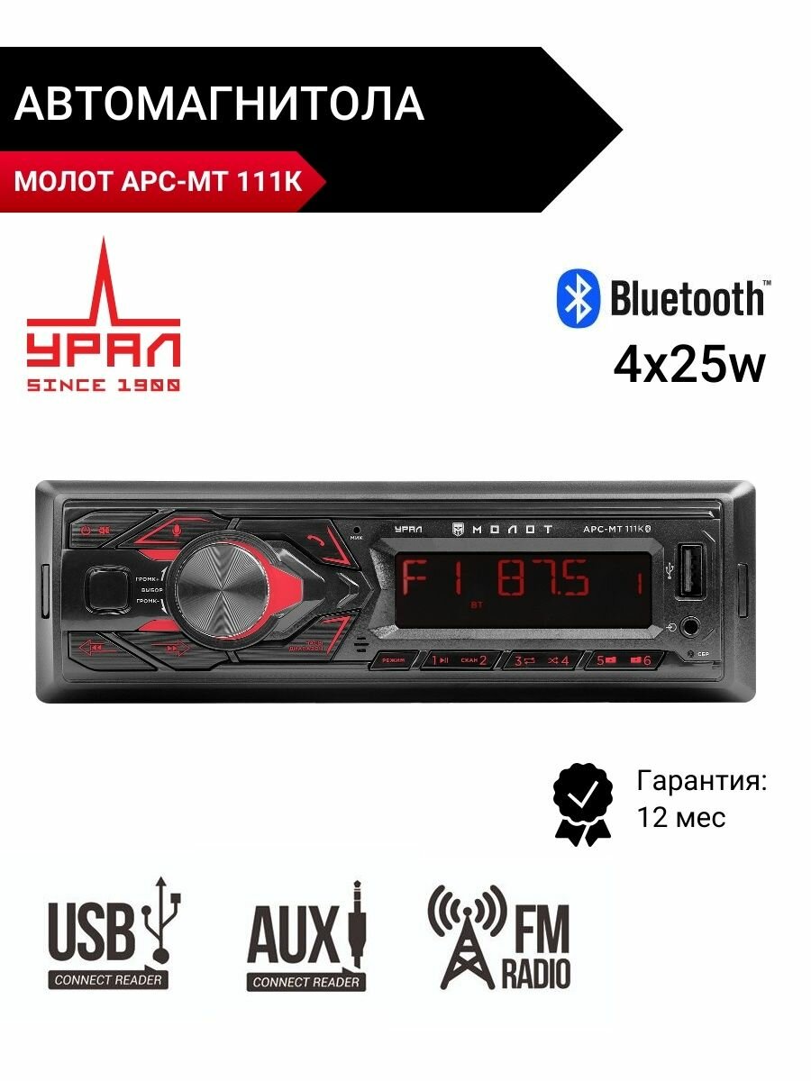 Автомагнитола URAL молот АРС-МТ 111К (USB, SD/MMC, Bluetooth)