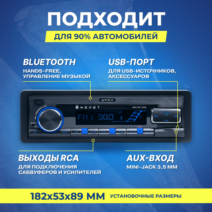 Автомагнитола URAL молот АРС-МТ 111К (USB, SD/MMC, Bluetooth)