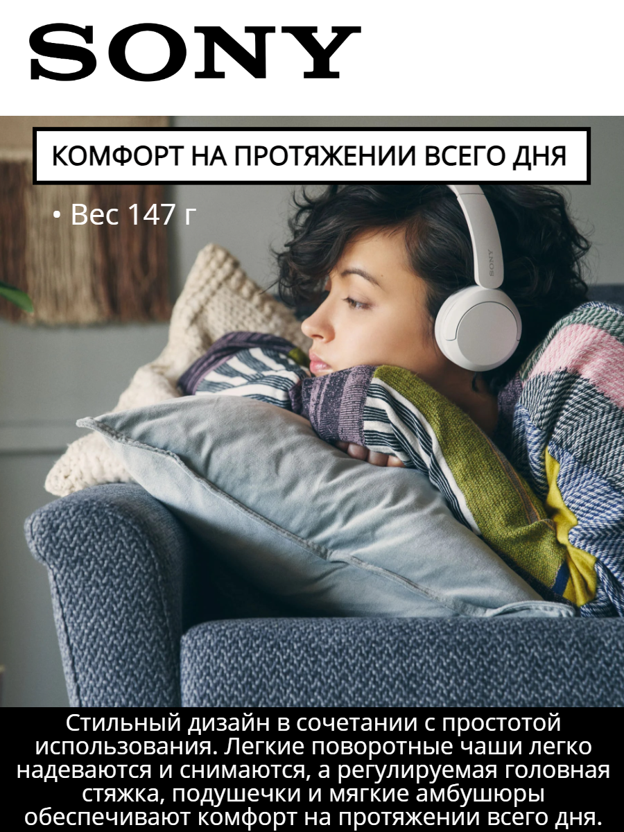 SONY Накладные Bluetooth наушники Sony WH-CH520/W Цвет Белый 8 990 ₽ Подробнее