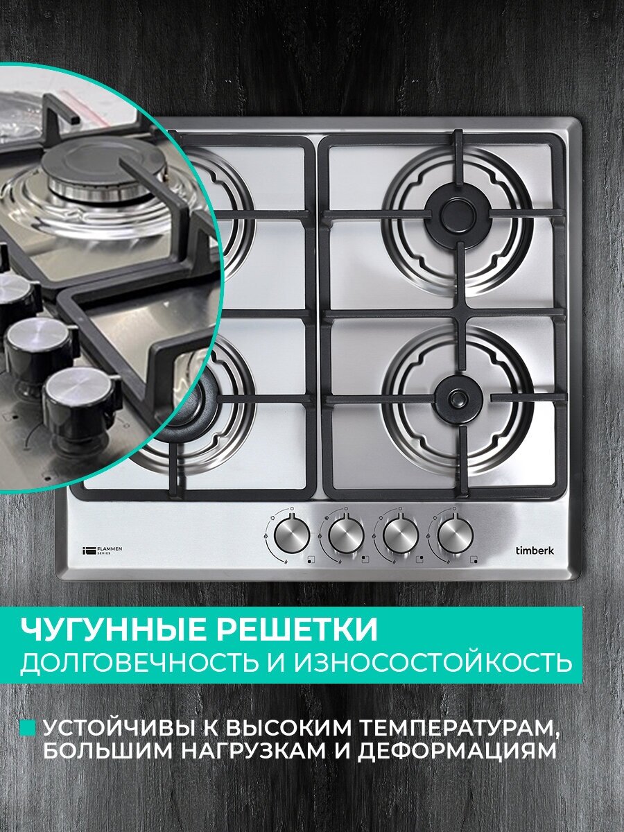 Варочные поверхности Встраиваемая газовая варочная панель Timberk T-HG4SS56 электроподжиг и газ-контроль