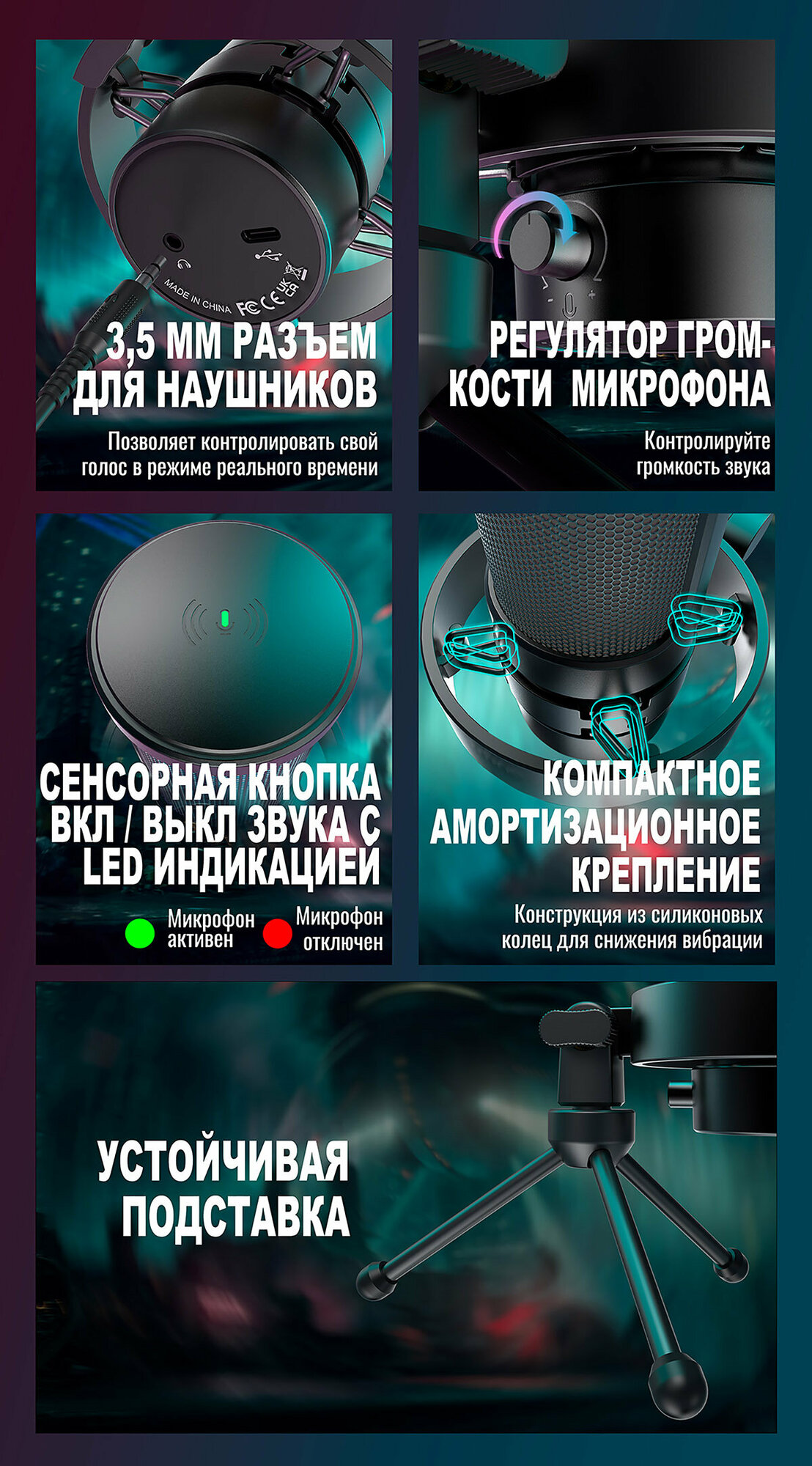Микрофон проводной Fifine Ampligame A8V, разъем: USB Type-C, черный