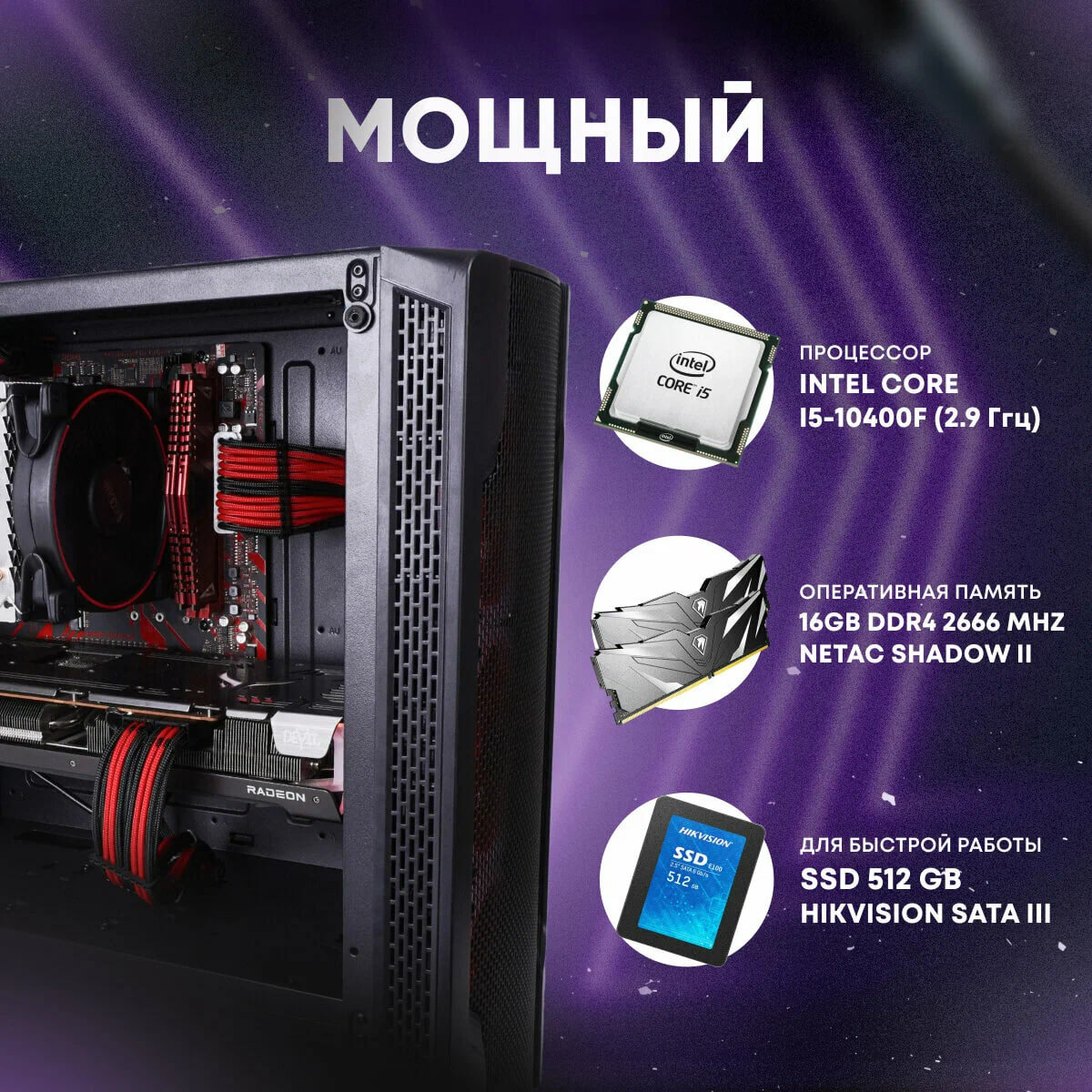 Персональные компьютеры Системный блок Intel Игровой компьютер (Intel Core-i5 10400f(2.9 ГГц), RAM 16 ГБ, SSD 512 ГБ, NVIDIA GeForce RTX 3050 (8 Гб), Windows 10 Home) черный
