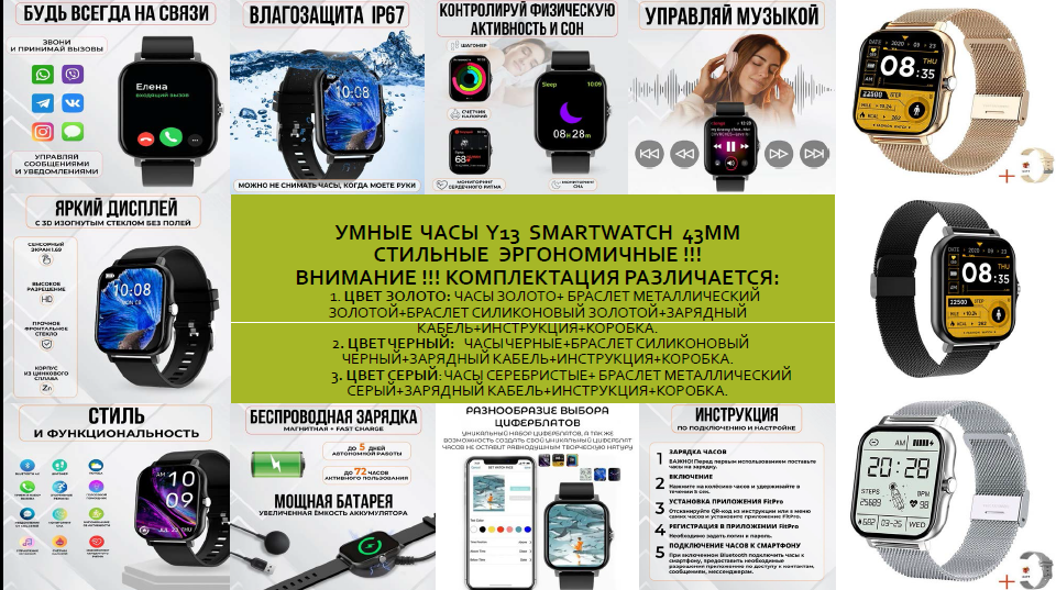 | Возможные измерения | пульсометр / уровень кислорода в крови / кол-во шагов / пройденное расстояние / расход энергии (калории) / время активности / отслеживание сна / женский календарь |
