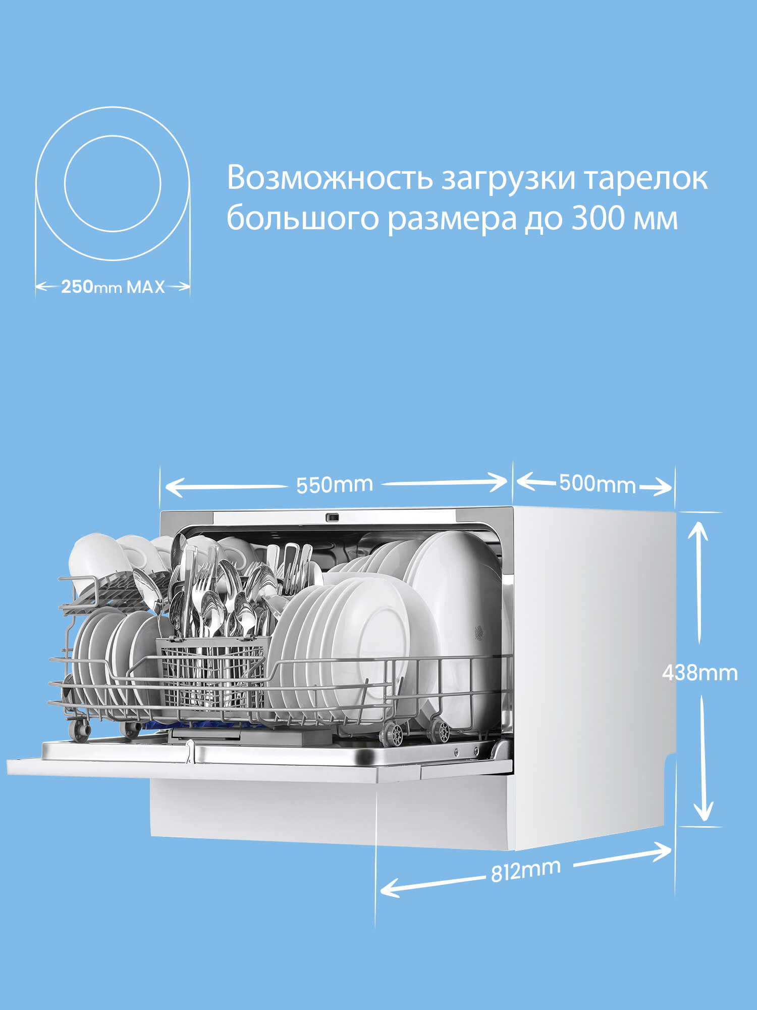 Посудомоечные машины Компактная посудомоечная машина Comfee CDWC551Wi, Wi-Fi управление, 6 программ, самоочистка, сушка, LED дисплей, белый
