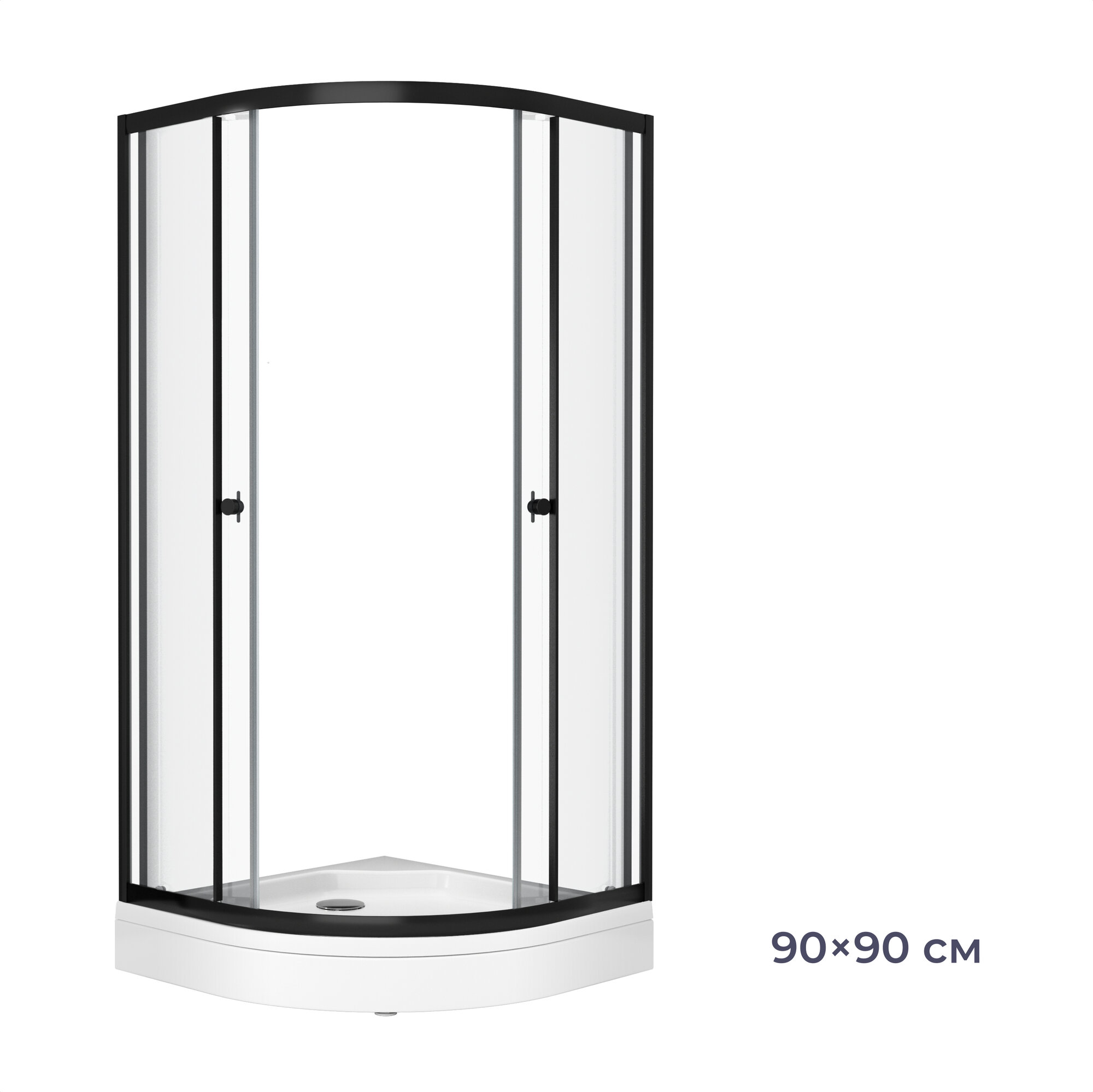 Душевые кабины Душевой уголок с поддоном Homsly, черный, полукруглый 90*90 см, коллекция Basic, 4H-017-BR90-BSC