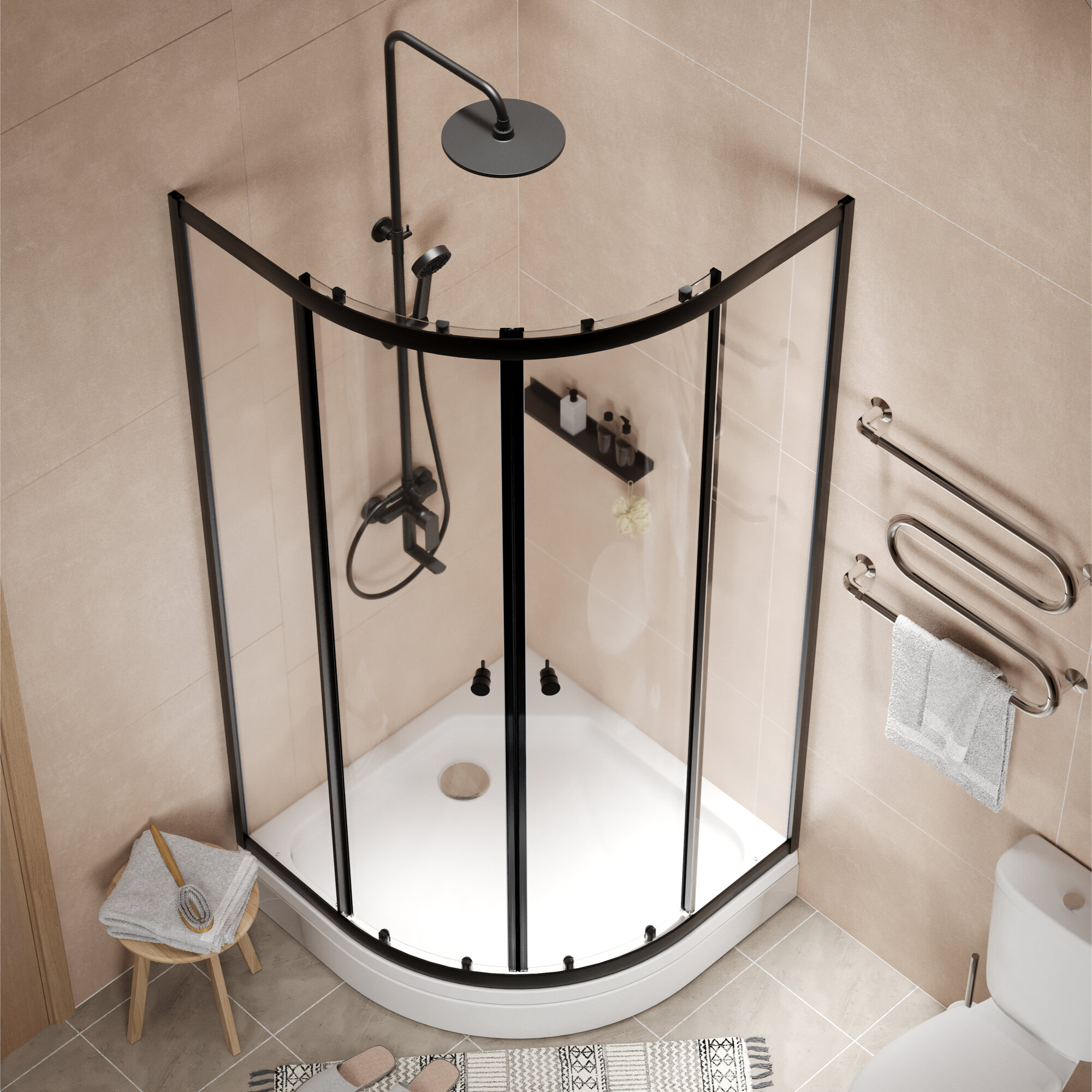 Душевой уголок с поддоном Homsly, черный, полукруглый 100*100 см, коллекция Basic, 4H-019-BR10-BSC