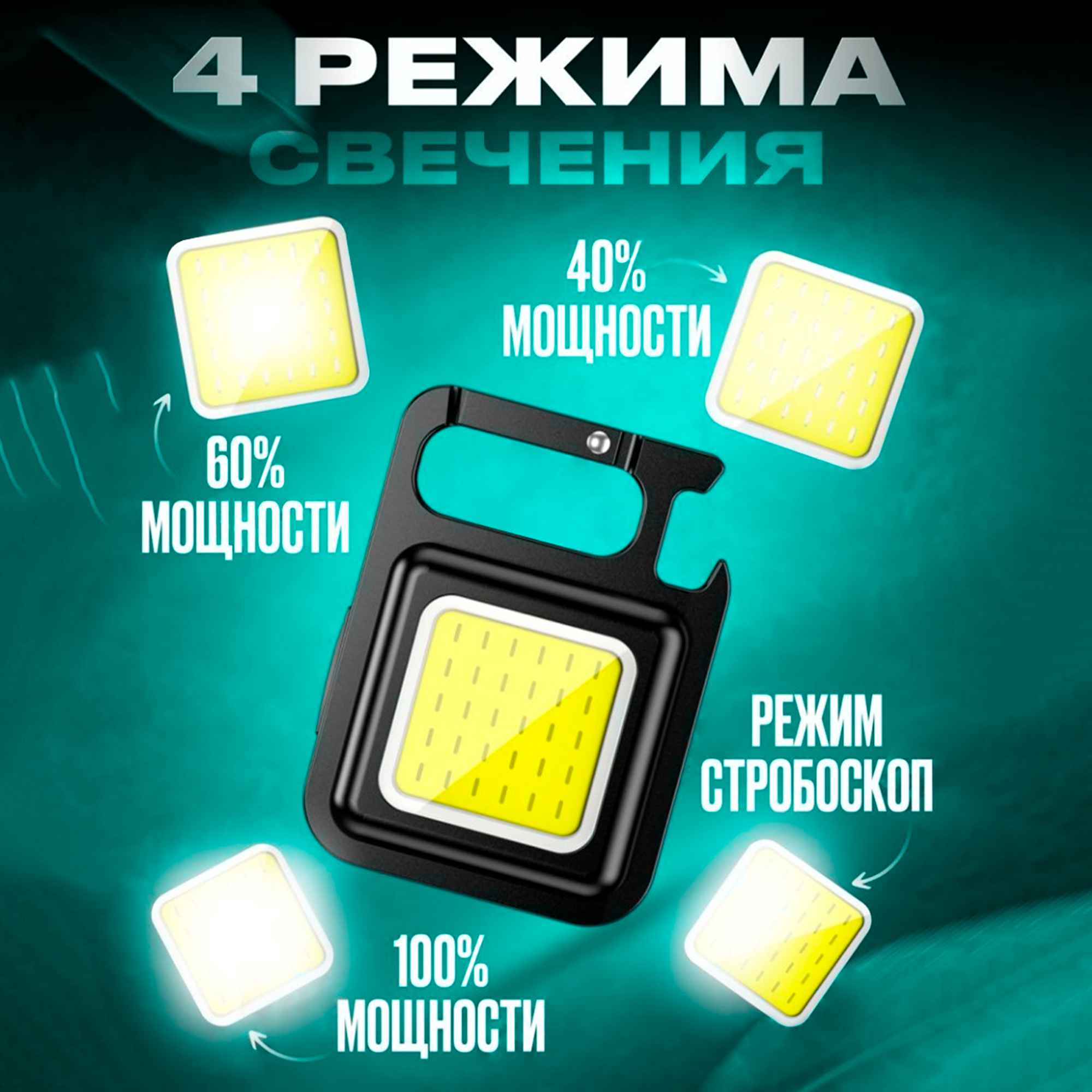 Фонарики Фонарик брелок, AMFOX, 7-LT-MP, аккумуляторный, светодиодный, 4 режима, кемпинговый, фонарь для кемпинга, охоты, туризма, отдыха, черный