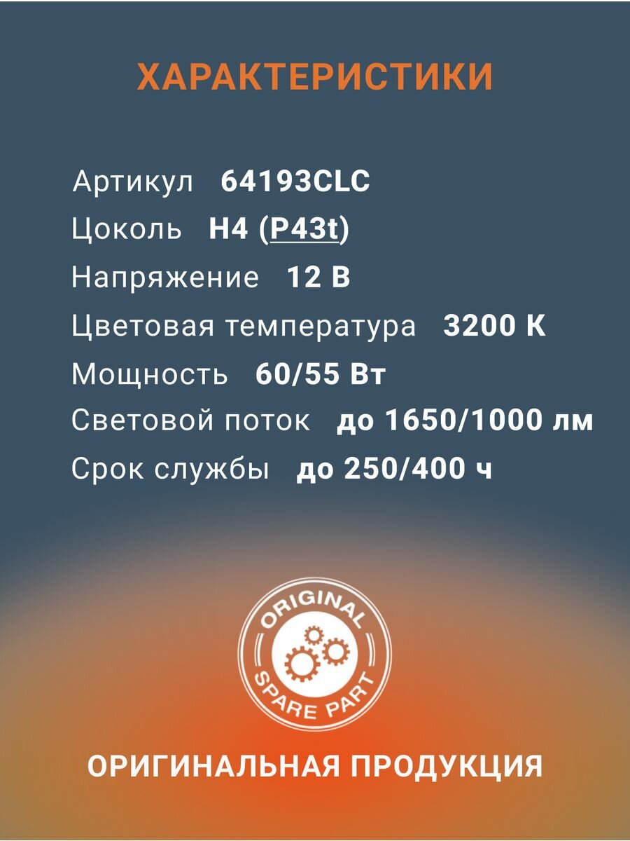 OSRAM Автолампа H4 60/55 P43t-38 12V 64193CLC 620 ₽ Подробнее
