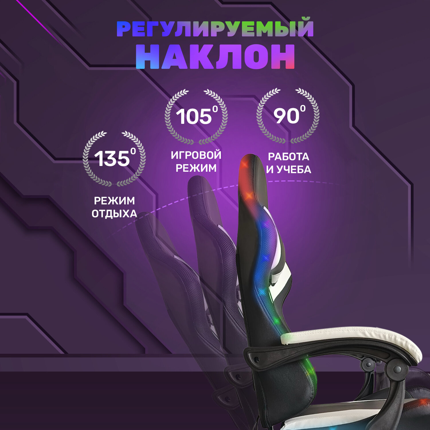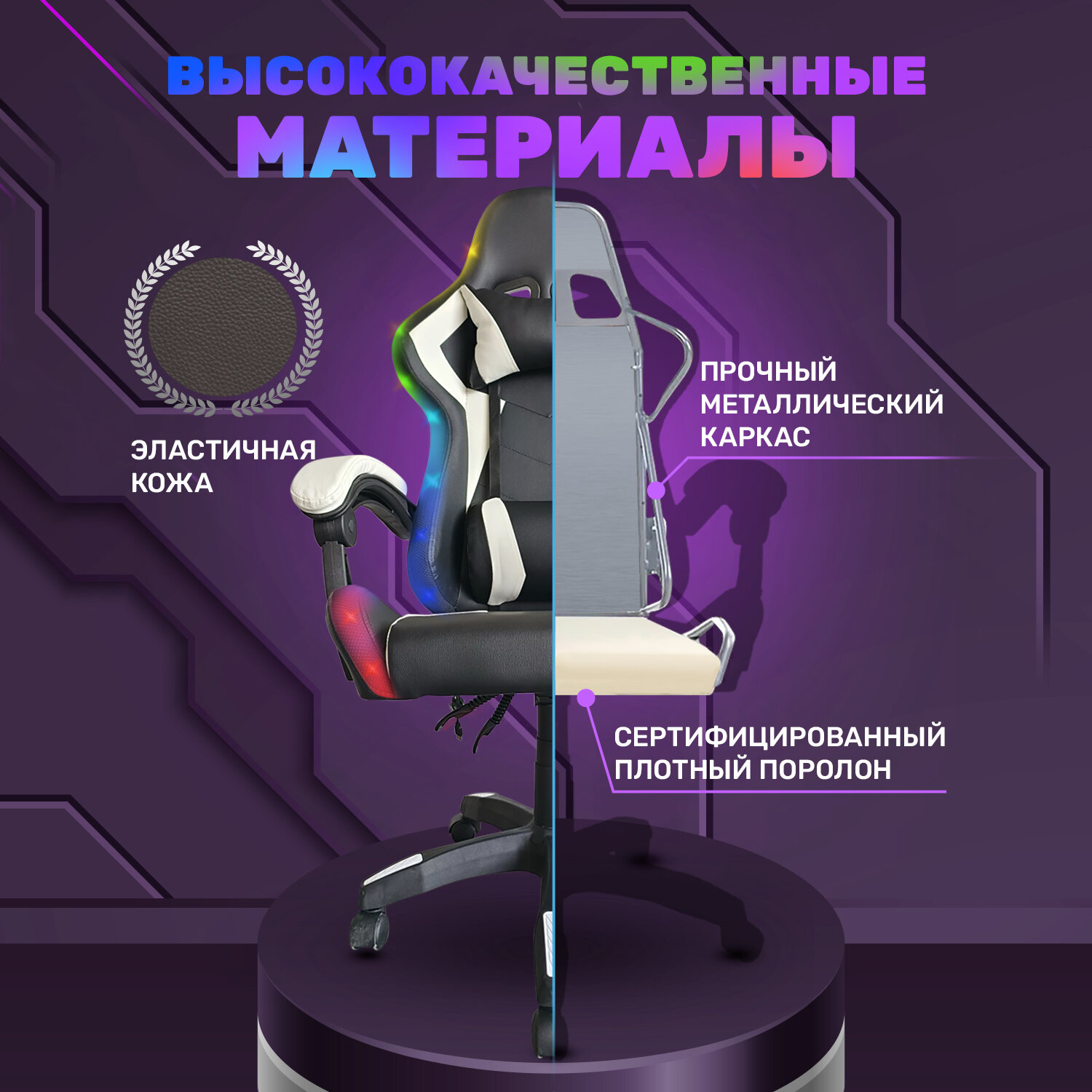 Компьютерные кресла Игровое геймерское кресло на колесиках BYROOM Game BAN RGB white HS-5010-W-RGB кожаное крутящееся. Компьютерный стул для геймера с ортопедической высокой спинкой для игр и работы на пк