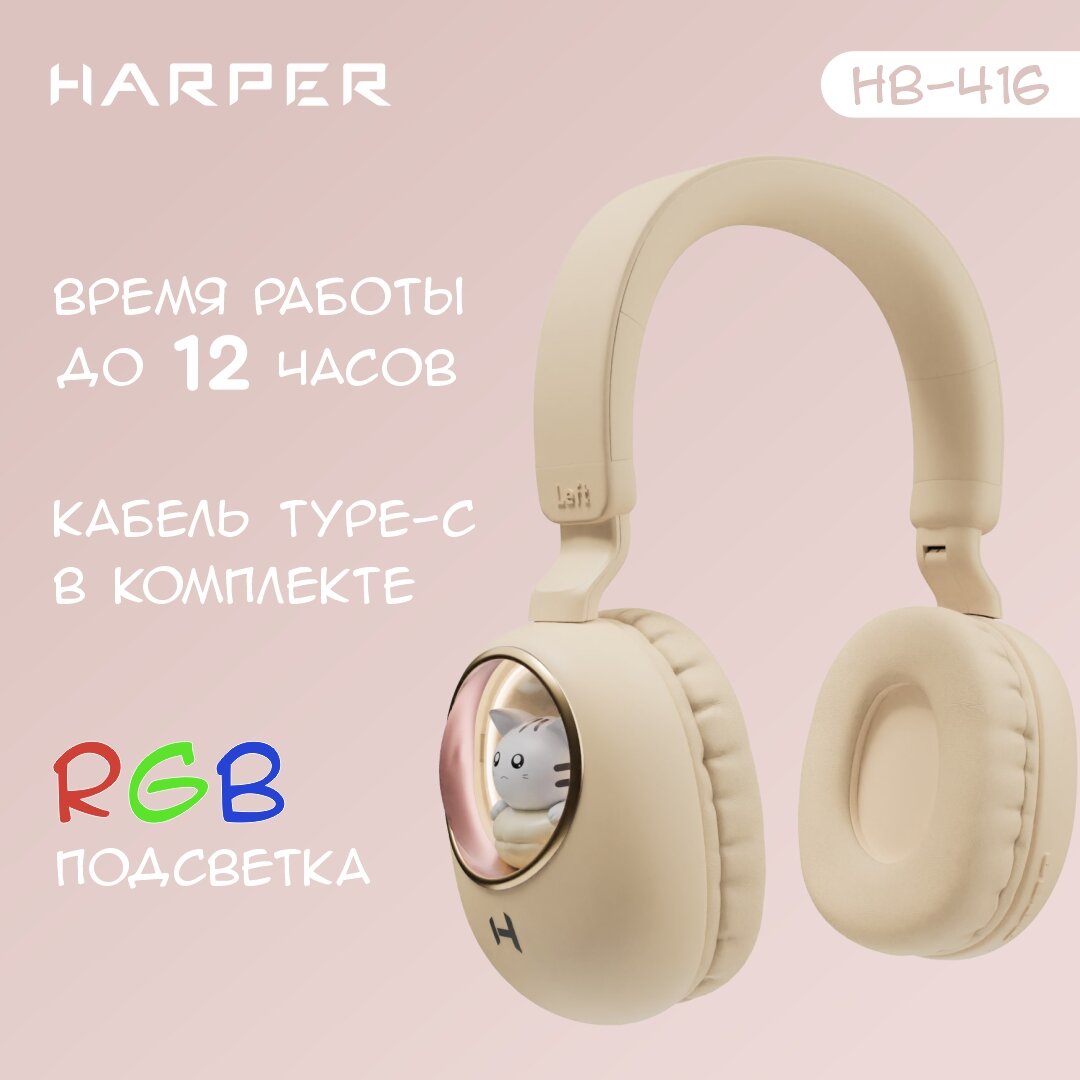Беспроводные накладные BT наушники HARPER HB-416 (cat in window), бежевый 1 329 ₽ Подробнее