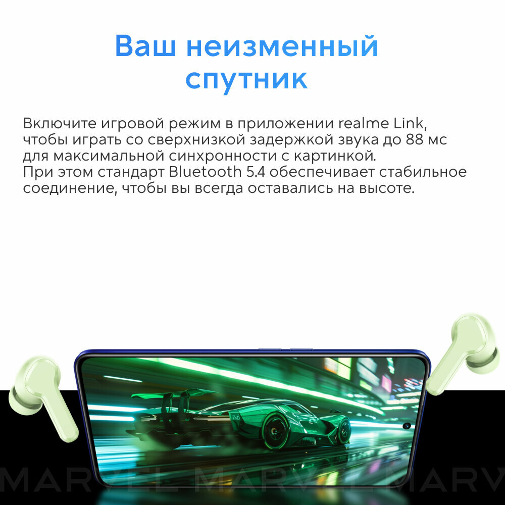 Bluetooth-гарнитура Realme Buds T310, длительное время автономной работы, 50 мс, низкая задержка 2 699 ₽ Подробнее