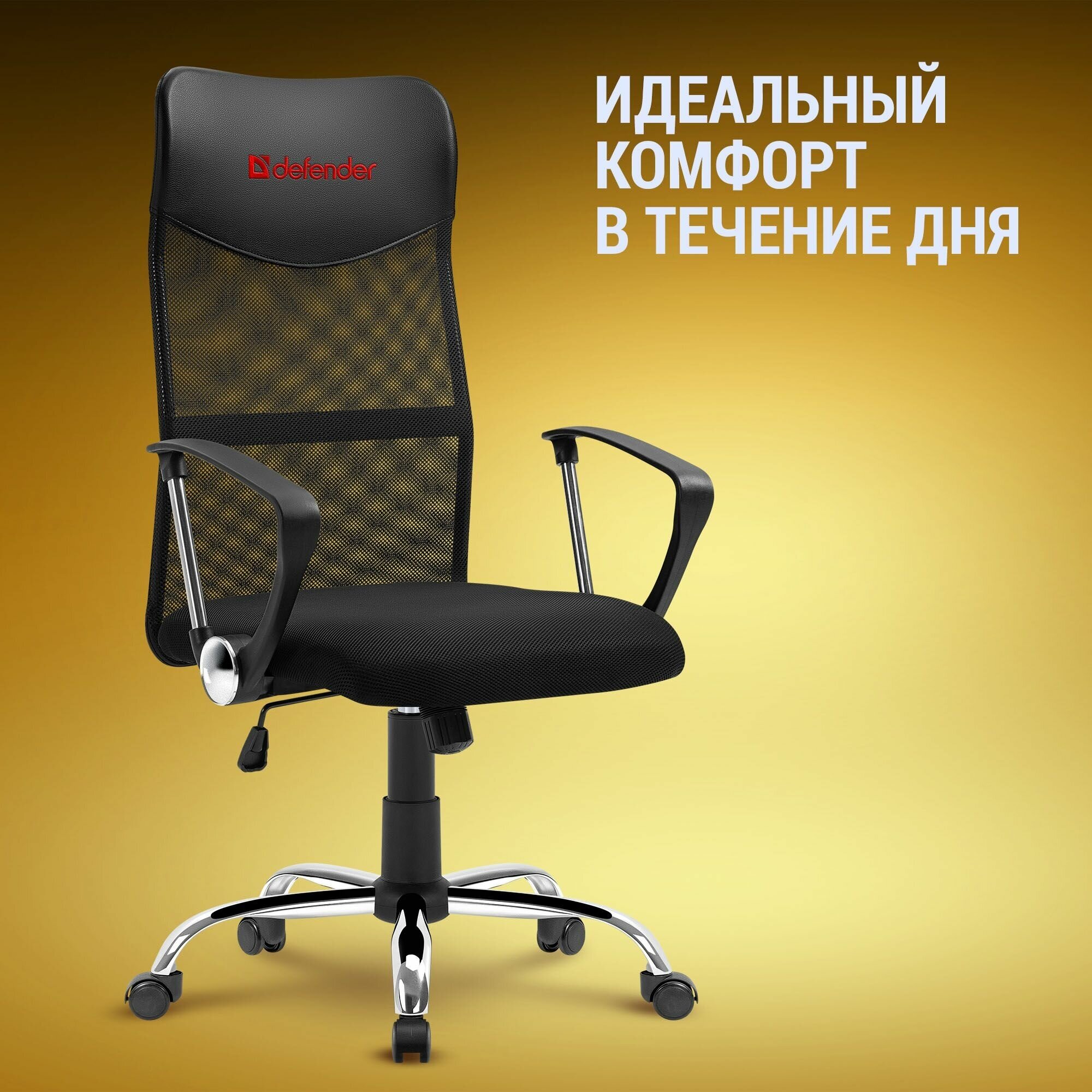 Компьютерные кресла Офисное кресло Defender ATX, черный, сетка, хромированная крестовина