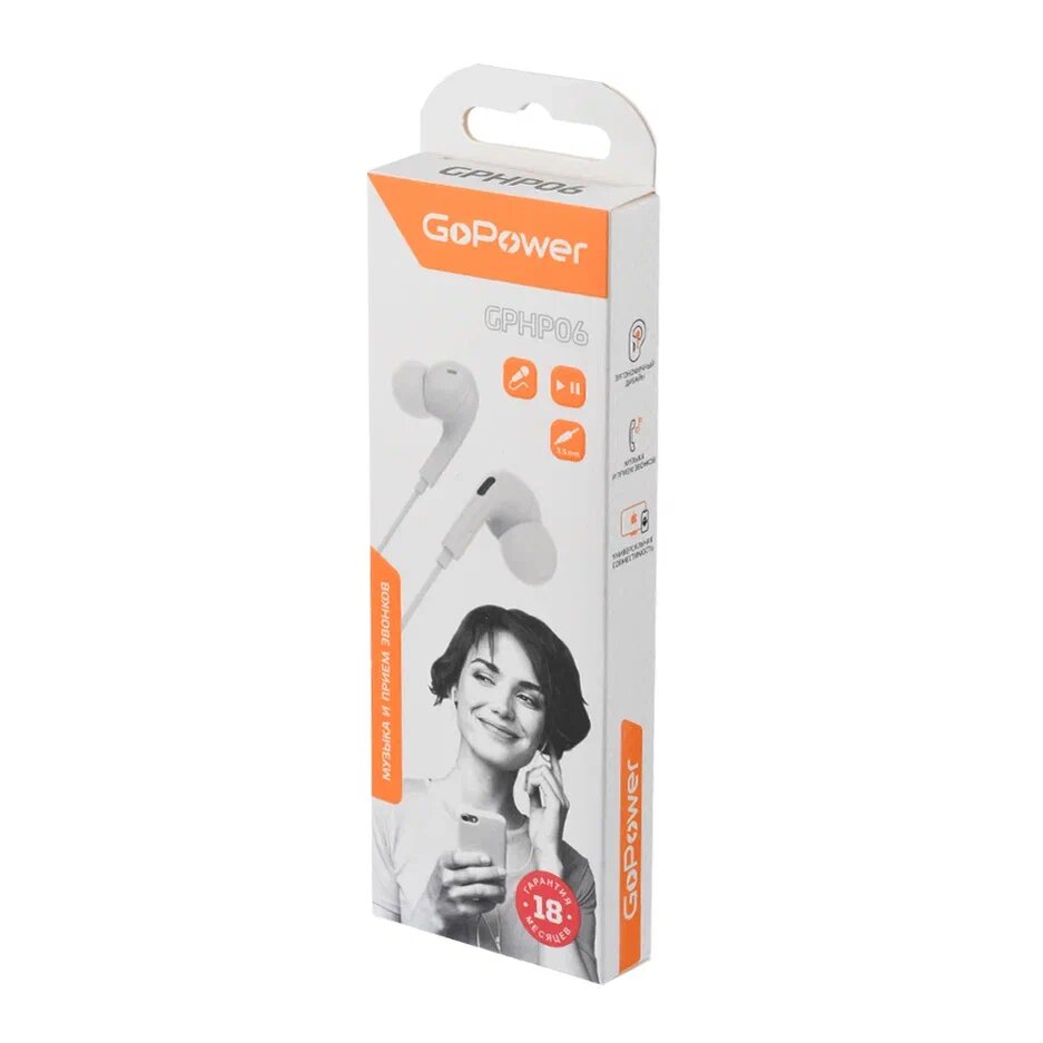 Наушники GoPower GPHP06 Наушники внутриканальные GoPower GPHP06 белый 00-00022771