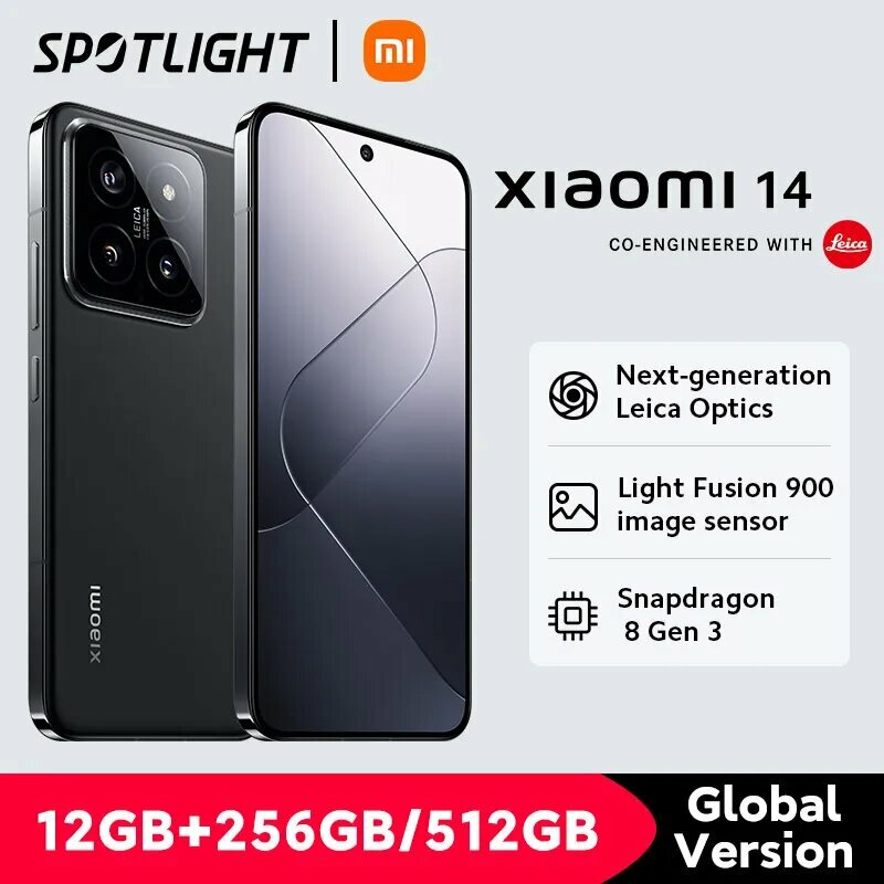 Мобильные телефоны Смартфон Xiaomi 14 глобальной версии, 12 Гб ПЗУ 256 ГБ 512 Гб 50 МП Leica 6,36 "120 Гц AMOLED Snapdragon 8 Gen 3 Hypercharge 90 Вт (14XM295: $895-$295) (14XM375: $995-$375), 12GB 256GB Black, Official Standard