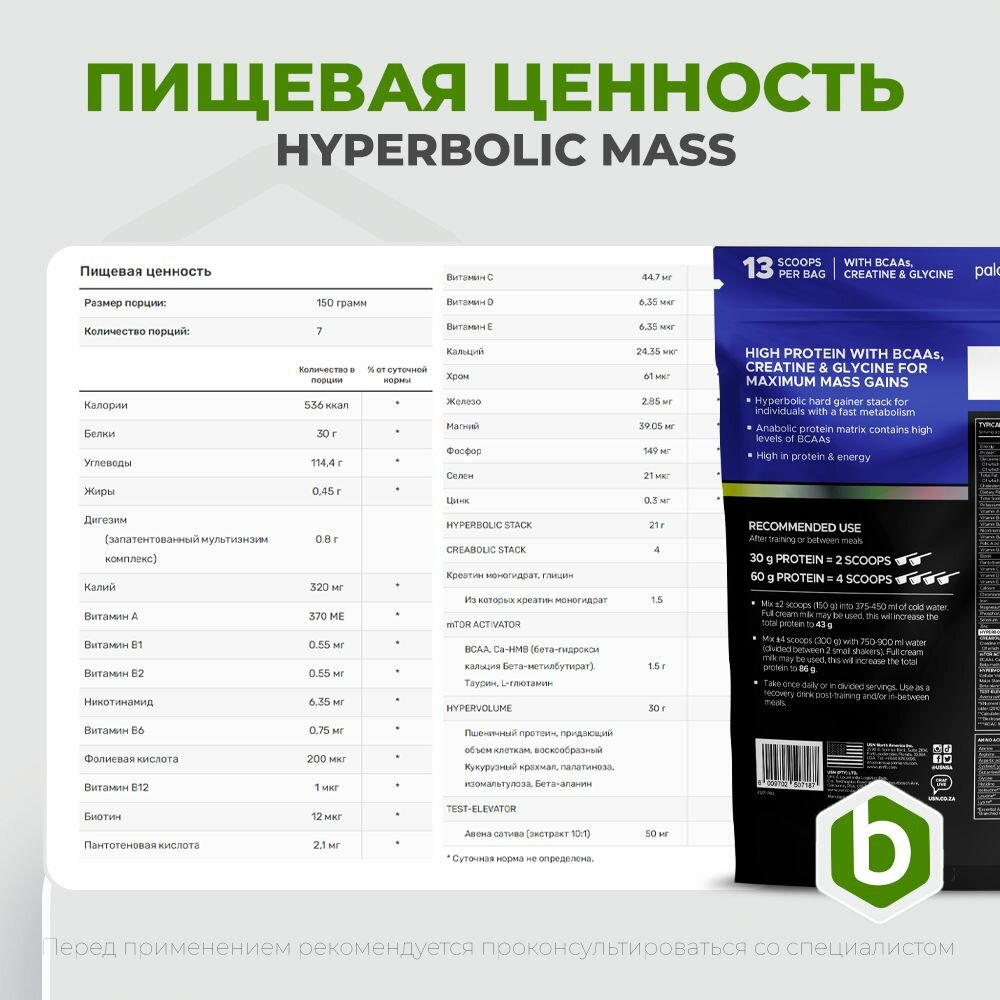 | Добавки | креатин / витаминно-минеральный комплекс |