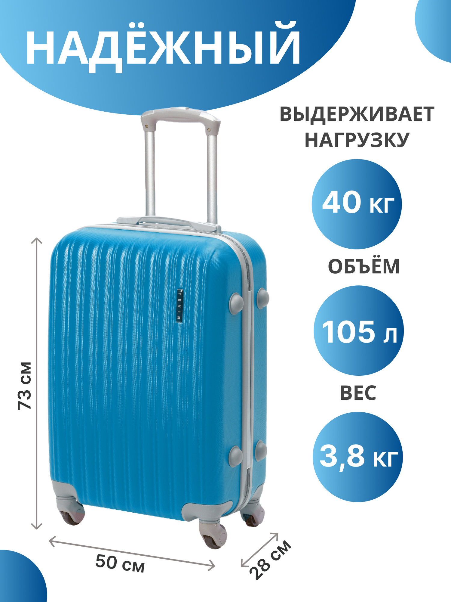 Чемодан на колесах дорожный средний багаж для путешествий s+ TEVIN размер С+ 60 см 52 л легкий 2.6 кг прочный abs (абс) пластик Синий яркий 6 390 ₽ Подробнее