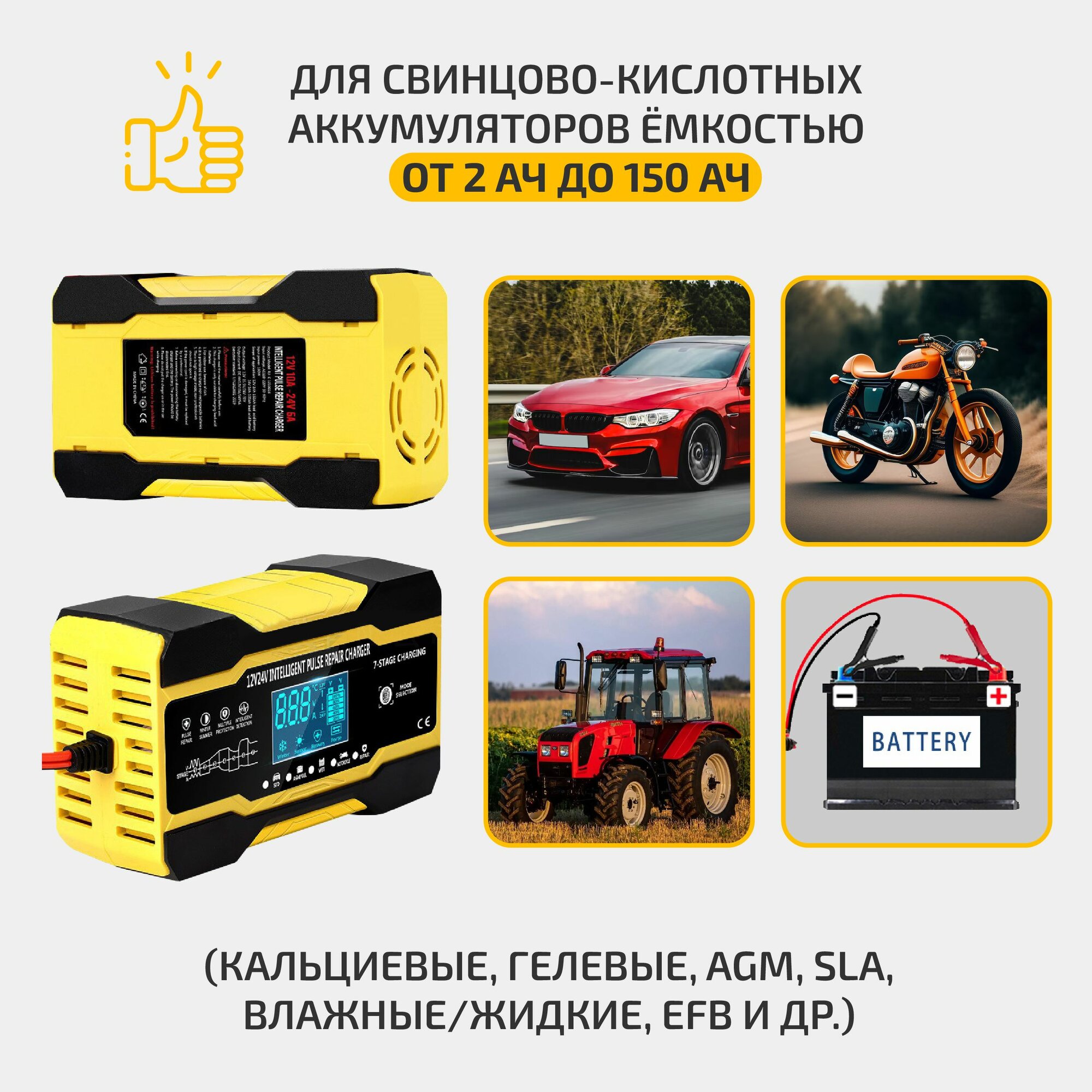 | Совместимость с аккумуляторами (АКБ) | WET/EFB (Lead-Acid) / AGM / GEL / Li-Ion |