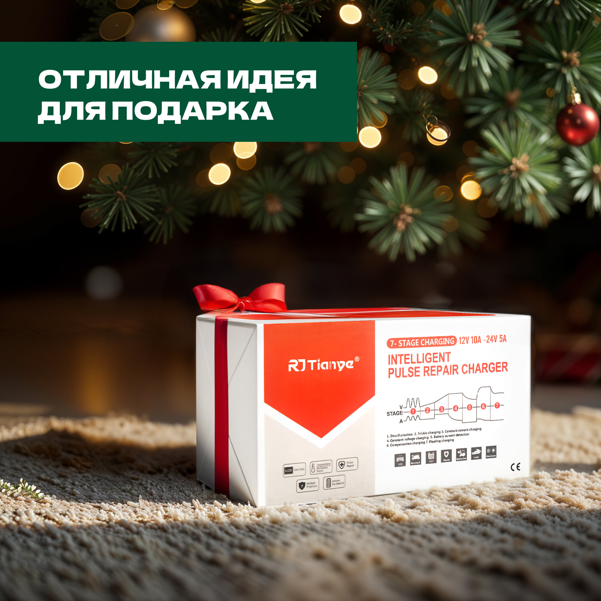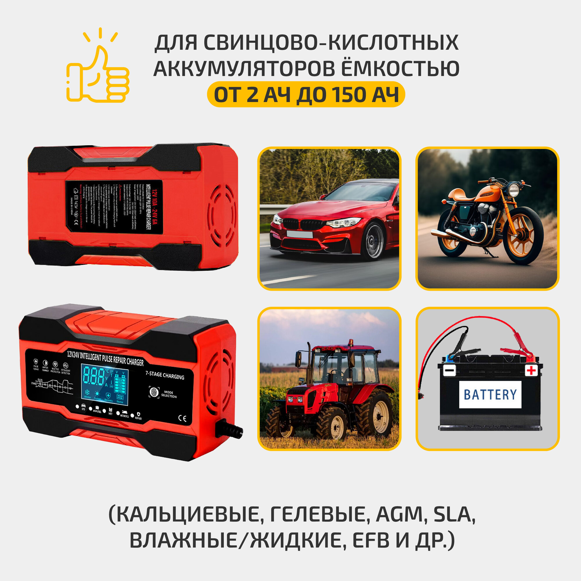 Пуско-зарядные устройства Зарядное устройство для аккумулятора RJ Tianye, 12-24В, 5А, 2-150Ач, с функцией восстановления