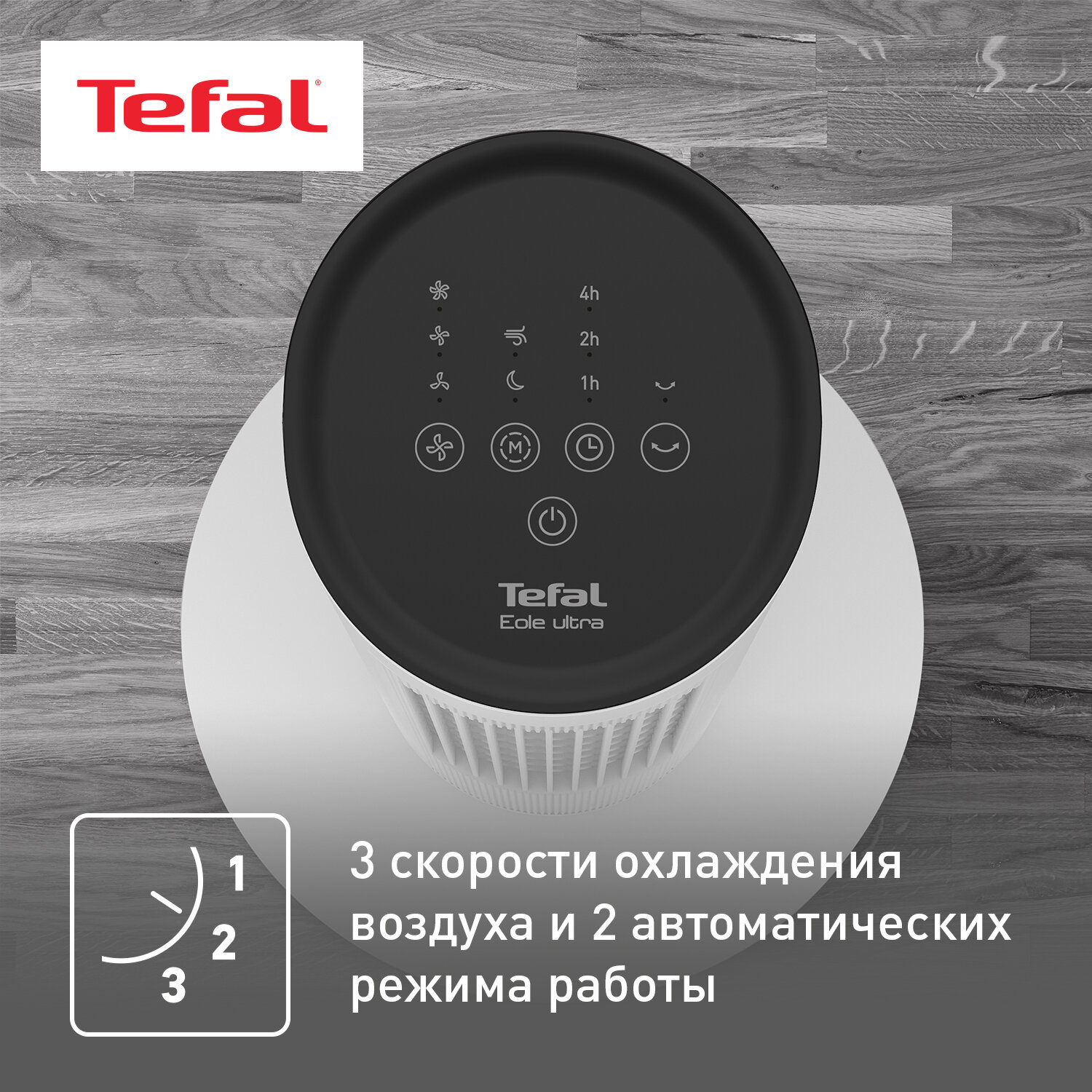 Вентиляторы Вентилятор напольный колонный Tefal Eole Ultra VF6871F0, с пультом управления, таймером, 3 скоростями, белый