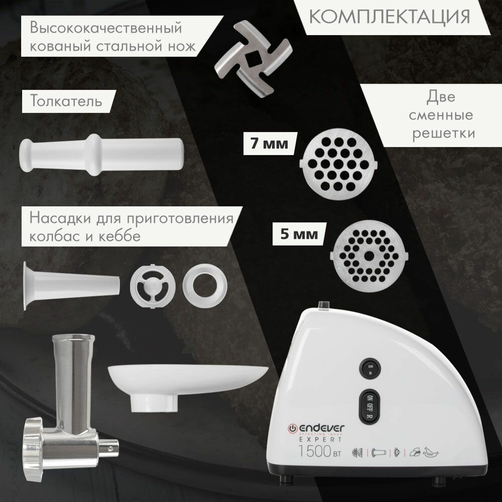 Мясорубка электрическая Endever Sigma-41 / 1500 Вт / до 2 кг/мин / насадки для колбас и кеббе