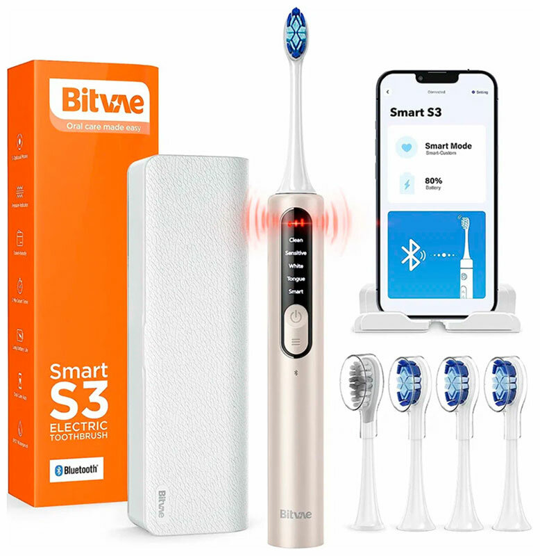 Электрические зубные щетки Электрическая зубная щетка Bitvae S3 Smart E-Toothbrush с поддержкой приложения для смартфонов, S3 GLOBAL, белая