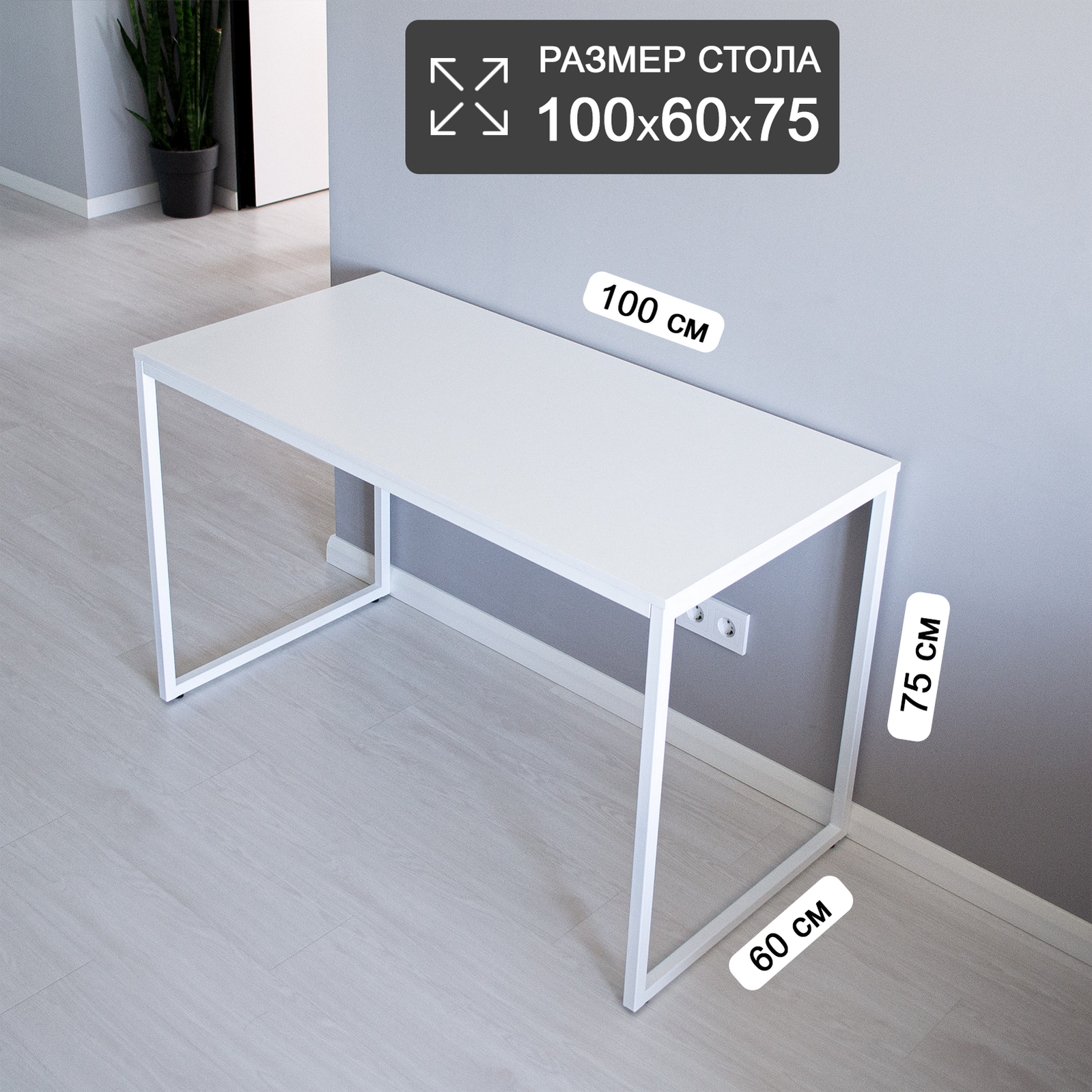 Офисные столы Стол рабочий кухонный письменный компьютерный обеденный для кухни лофт 100х60х75 см, Белый/Белый