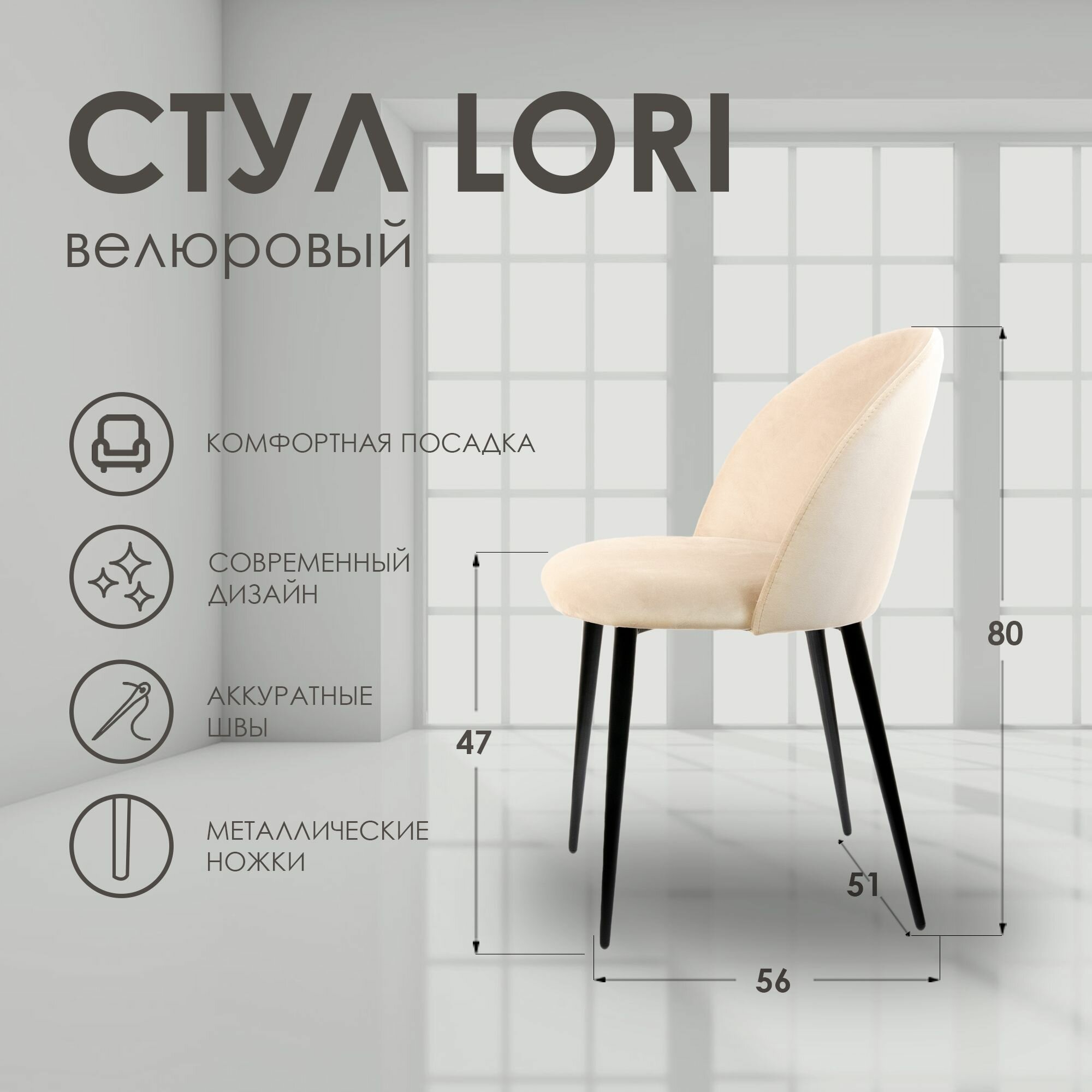 Стул для кухни LORI, мягкий велюр, бежевый 1шт 8 501 ₽ Подробнее
