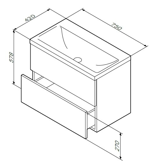 Тумба под раковину, подвесная GEM M90FHX07522GM 75 см, 2 ящика push-to-open, графит матовый