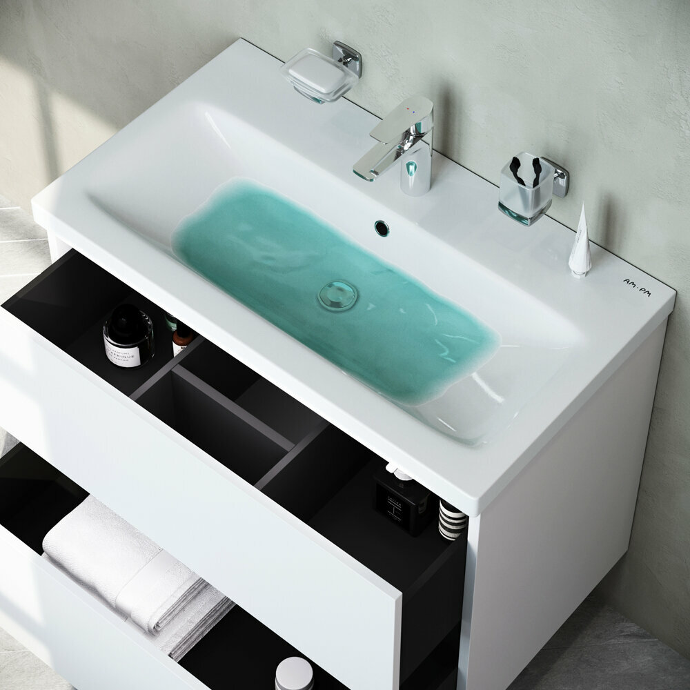 Тумба под раковину AM.PM GEM M90FHX07522WG подвесная, 75 см, 2 ящика push-to-open, белый глянец