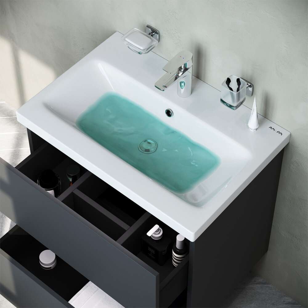 Тумба под раковину AM.PM GEM подвесная, 75 см, 2 ящика push-to-open, графит матовый