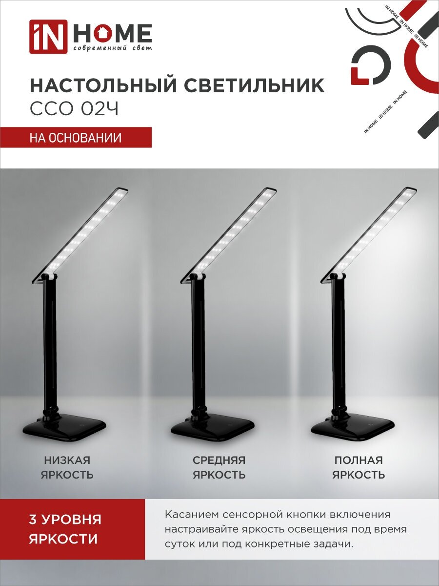 Светильник настольный светодиодный ССО 02Ч 10Вт 4000К 625лм сенсор-диммер адаптер черн. IN HOME 4690612013480 (1 шт.)