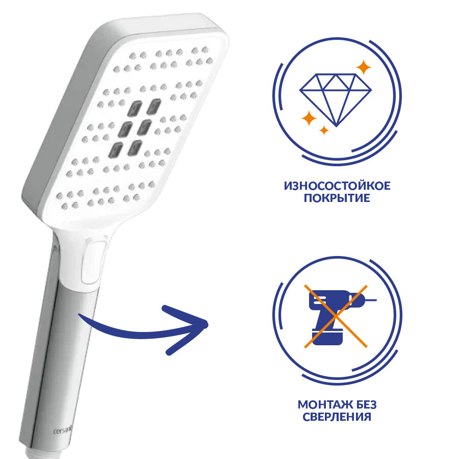 Душевые системы Душевой гарнитур с держателем лейки и шлангом Cersanit FERRO 3 режима 150 см 64085