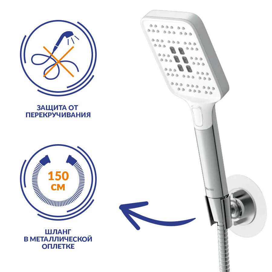 | Комплектация | ручной душ (душевая лейка) / верхний душ (тропический) / стойка / штанга / душевой шланг / крепление ручного душа |