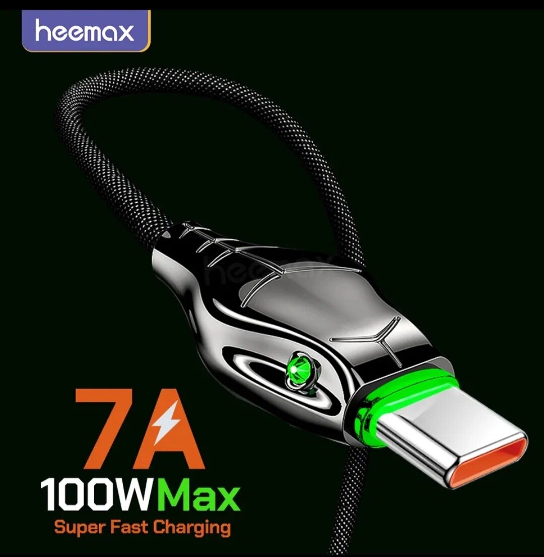 Зарядки для гаджетов Кабель зарядный HEEMAX USB - Type-C, 7 A, 66 Вт, макс 100 Вт, 1 м, индикатор питания, супер быстрая зарядка для Huawei, Xiaomi, Samsung (Черная Мамба)