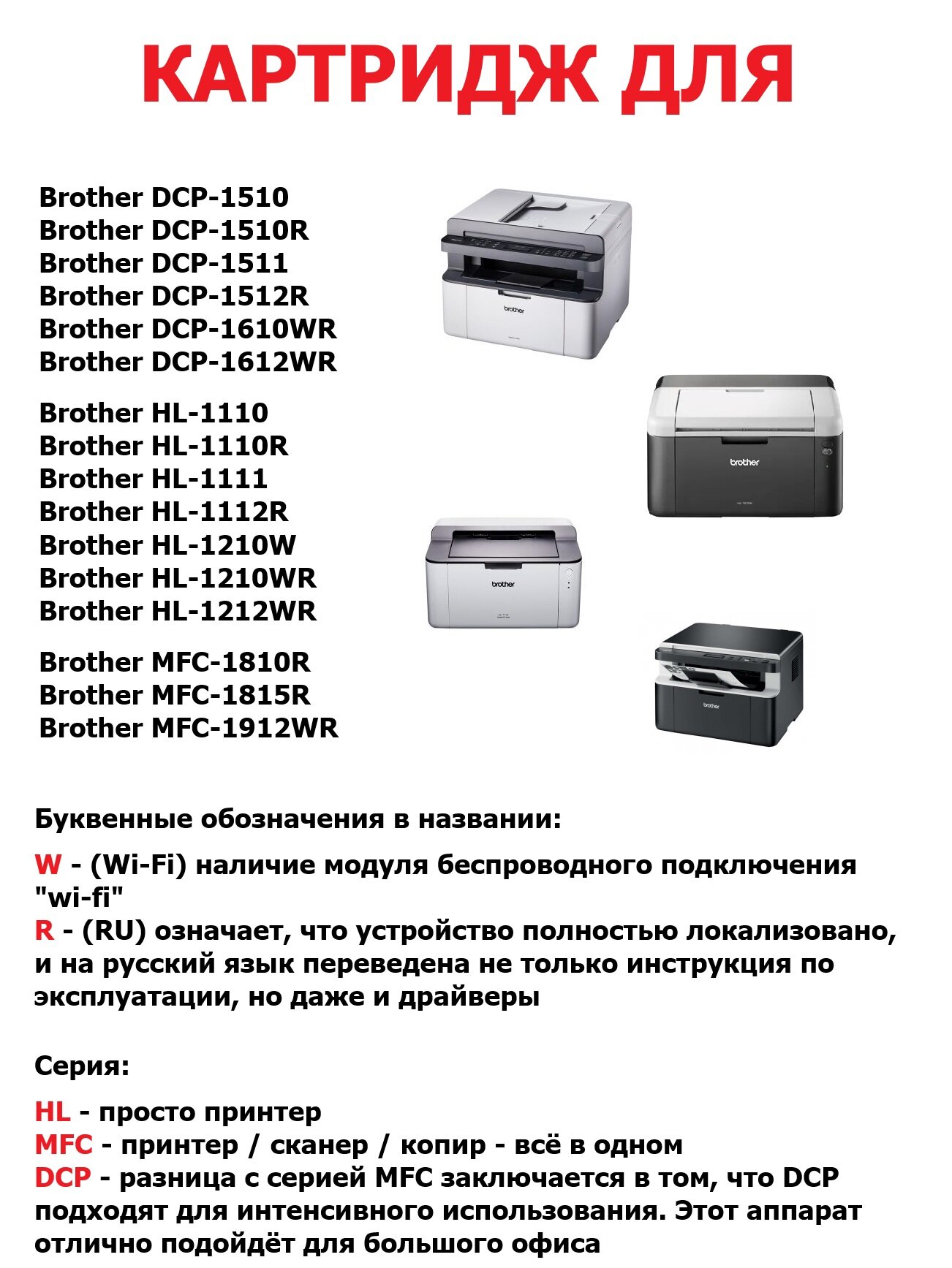 Картридж TN-1075 для Brother DCP-1510 DCP-1510R DCP-1512R DCP-1610WR DCP-1612WR HL-1110R HL-1112R MFC-1815R MFC-1912WR (1.000 страниц) - UNITON 1 036 ₽ Подробнее