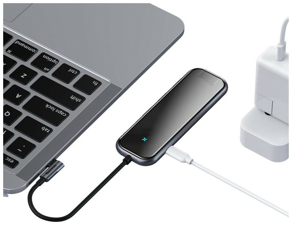 Хаб Baseus адаптер-концентратор Type-C to 3xUSB3.0+HDMI+RJ45+PD - Deep Gray (CAHUB-DZ0G)