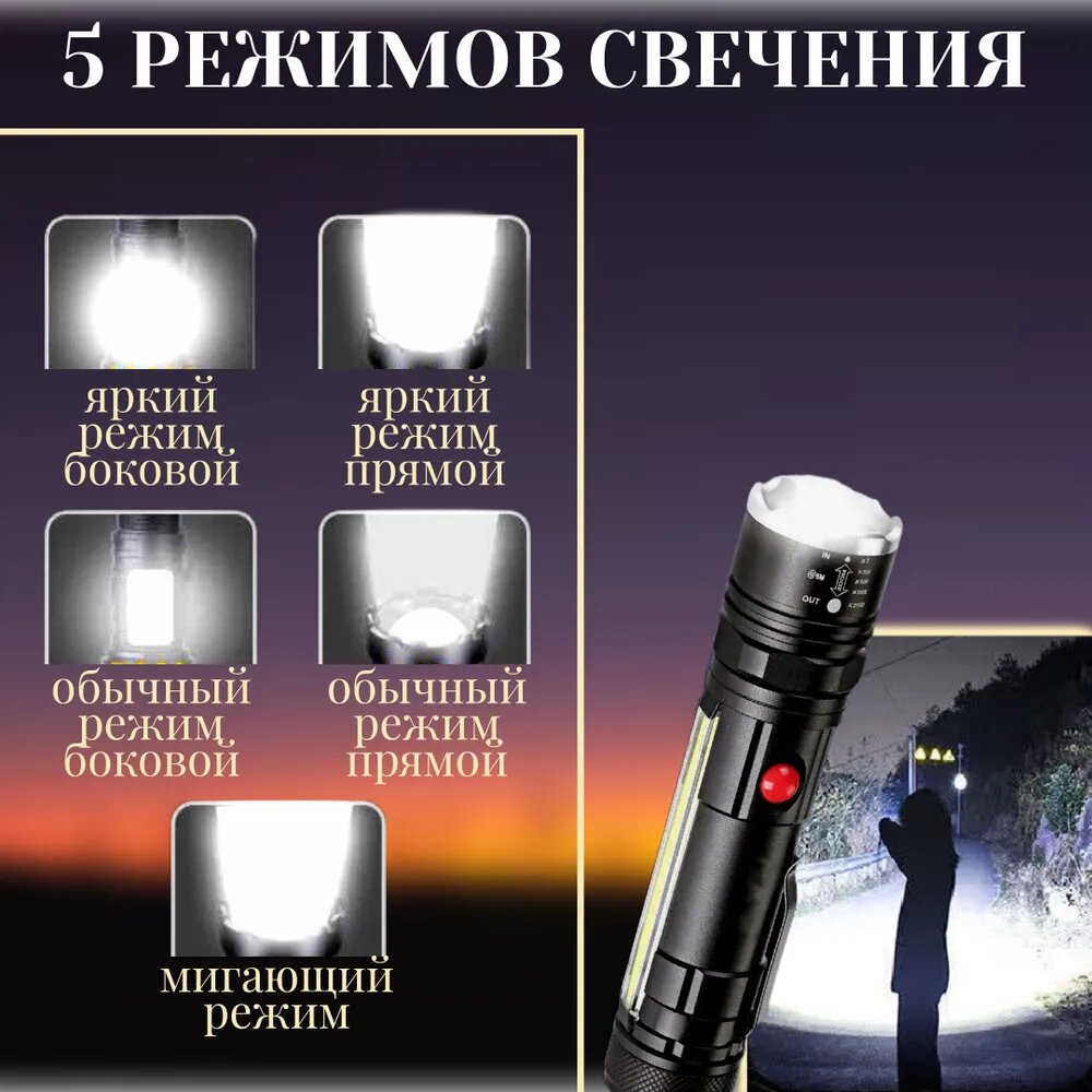 Фонарики Фонарь аккумуляторный светодиодный,тактичекский, фонарь фонарик аккумуляторный, с аккумулятором 18650, с магнитным держателем, мощный, светодиод Т6