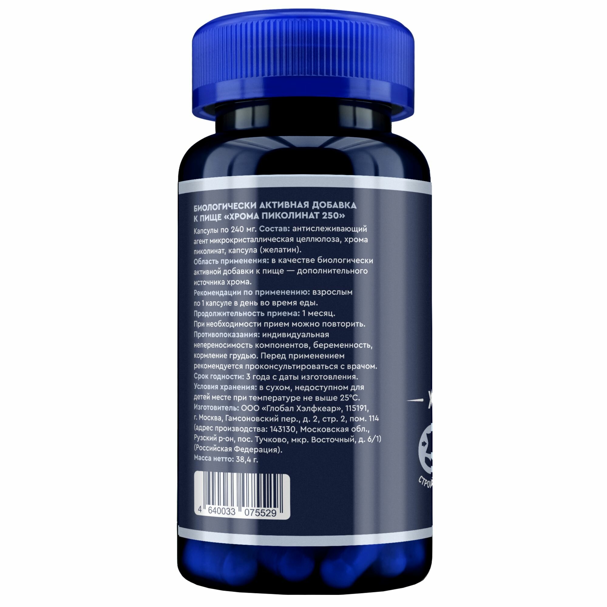 Мотошины Хрома Пиколинат 250 мкг, витамины / бад для похудения, снижения веса и контроля аппетита, 120 капсул.