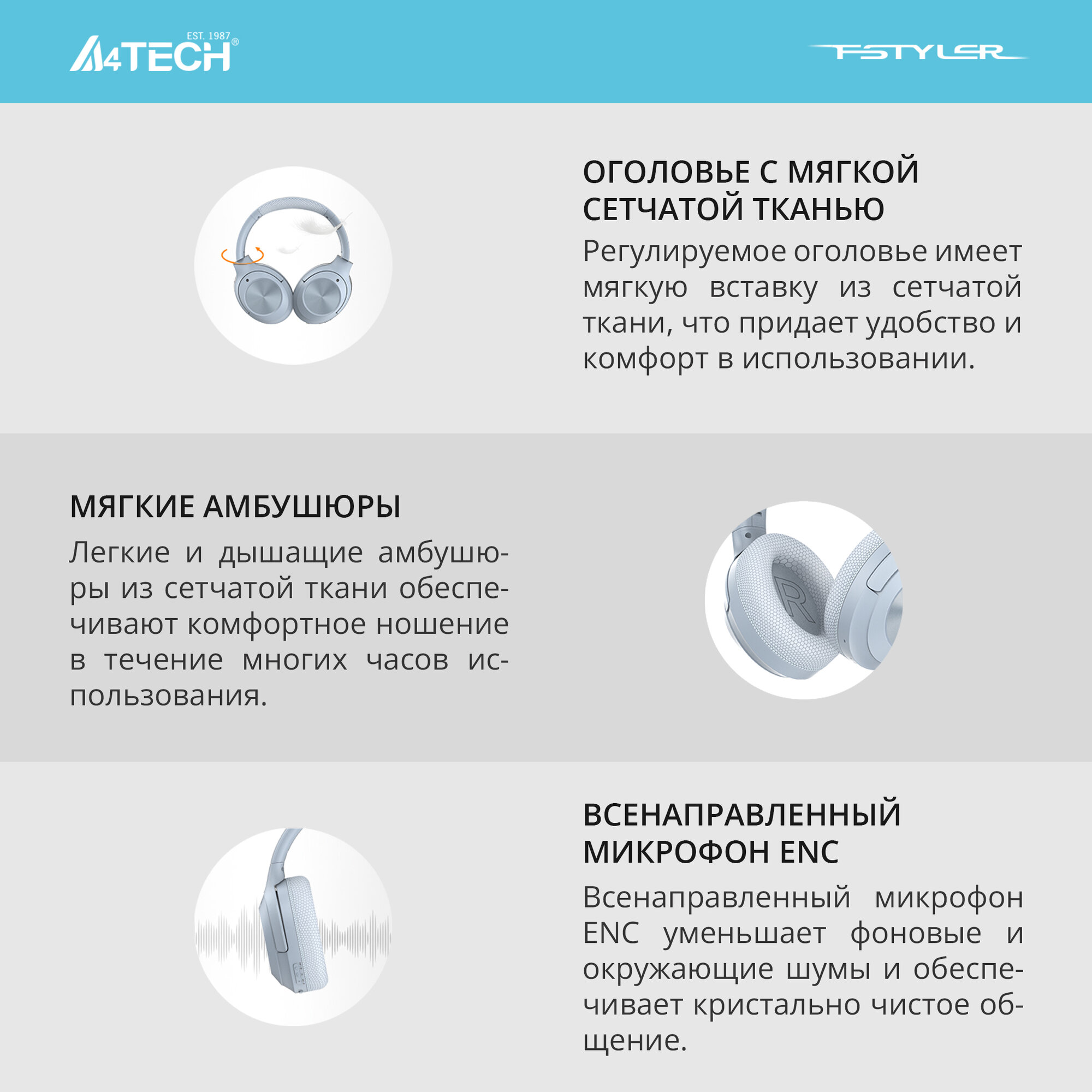 Наушники A4Tech Fstyler BH220 голубой беспроводные bluetooth (BH220 BLUE)