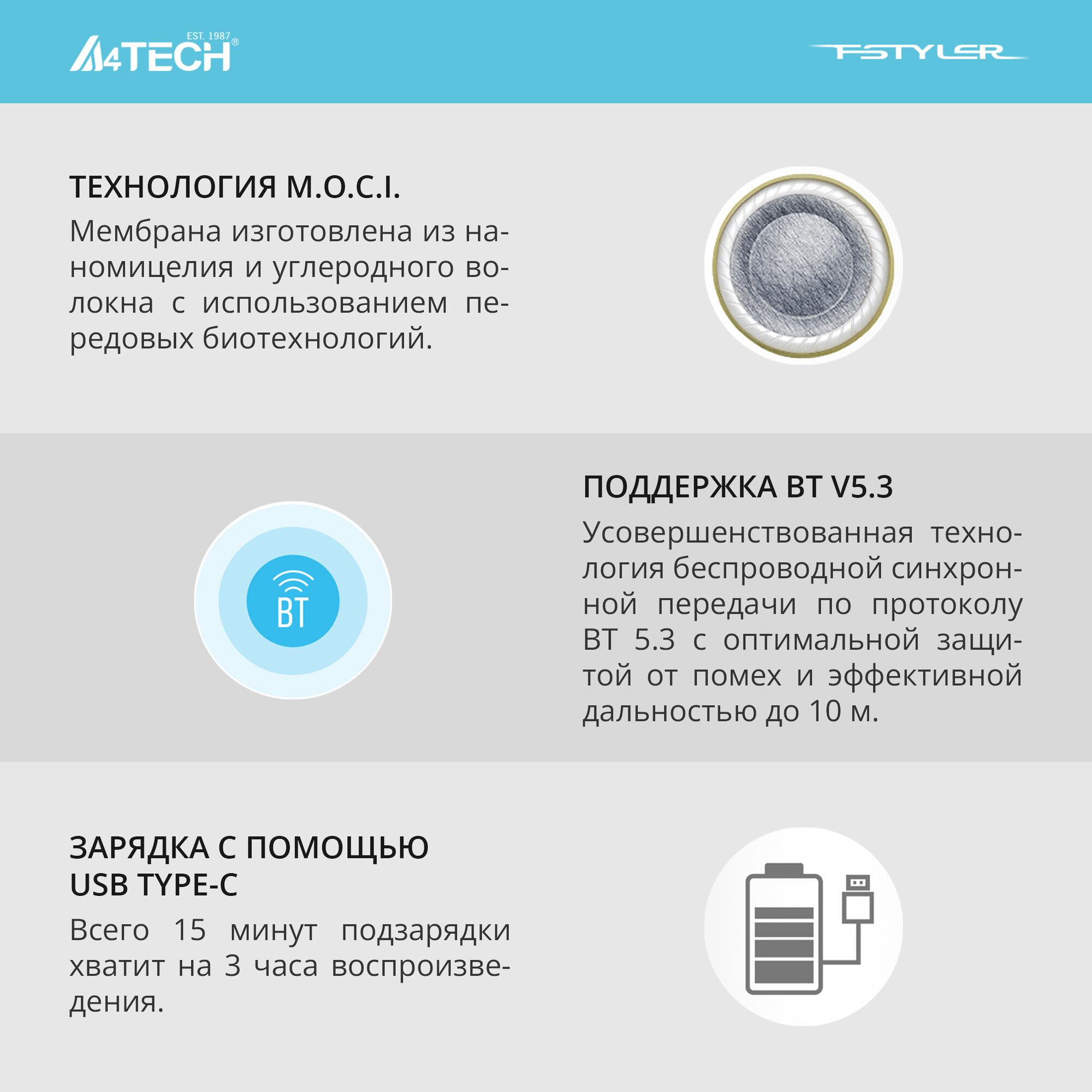 A4Tech Fstyler BH220 голубой беспроводные bluetooth (BH220 BLUE) 3 020 ₽ Подробнее