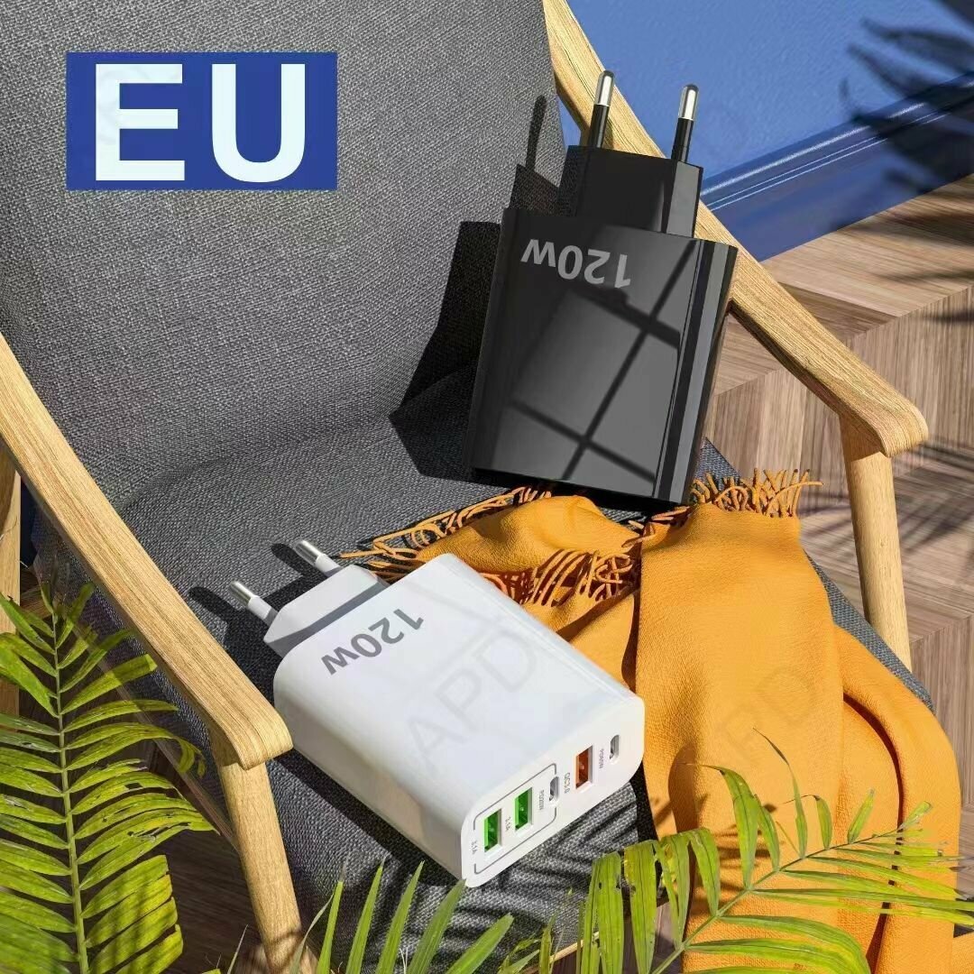 Пятипортовая быстрая зарядка 120W. Сетевое зарядное устройство QUALCOMM 3.0(55АС) 2023 Новинка. PD+QC3.0. 3*USB и 2*Type C. Без кабеля. Цвет черный 1 150 ₽ Подробнее