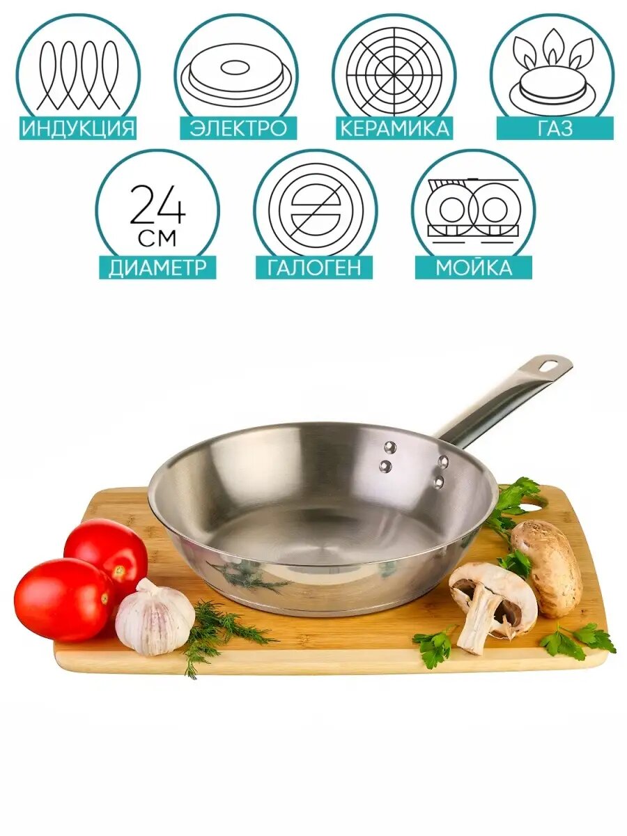 Сковорода "Общепит", d=24 см, толщина корпуса 0.6 мм, дно 3.5 мм, капсульное дно, индукция