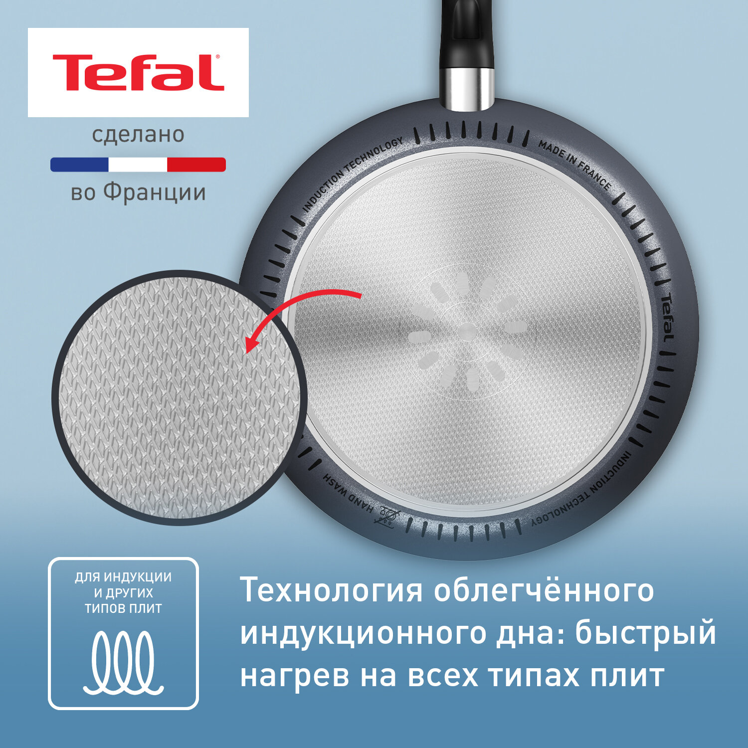 Сковорода для блинов Tefal Easy Chef 25 см, с индикатором температуры, антипригарным покрытием, для всех типов плит, включая индукционные, сделана во Франции 4 399 ₽ Подробнее