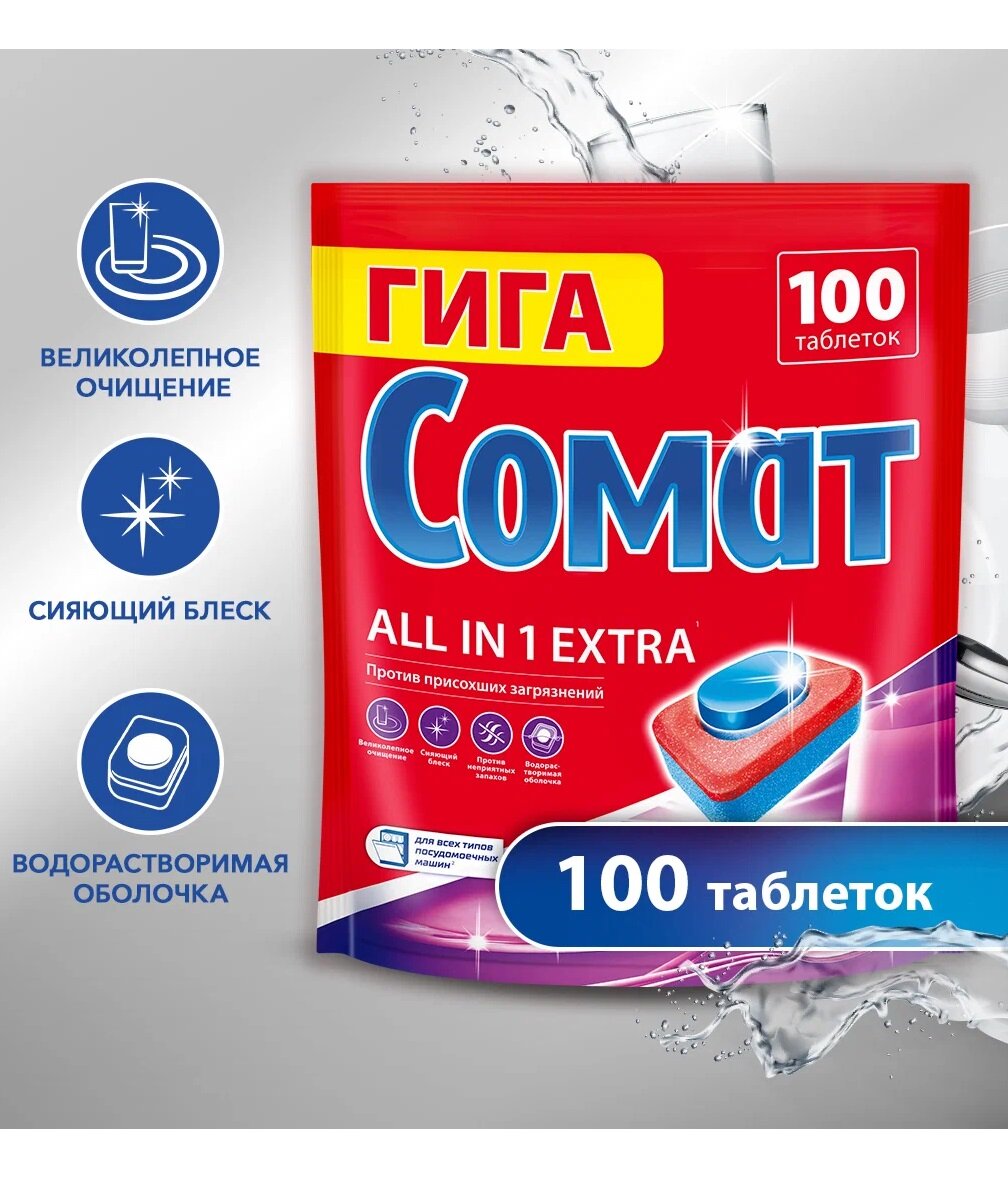Таблетки для посудомоечной машины Сомат Все в 1, 100 штук, средство для посудомоечной машины