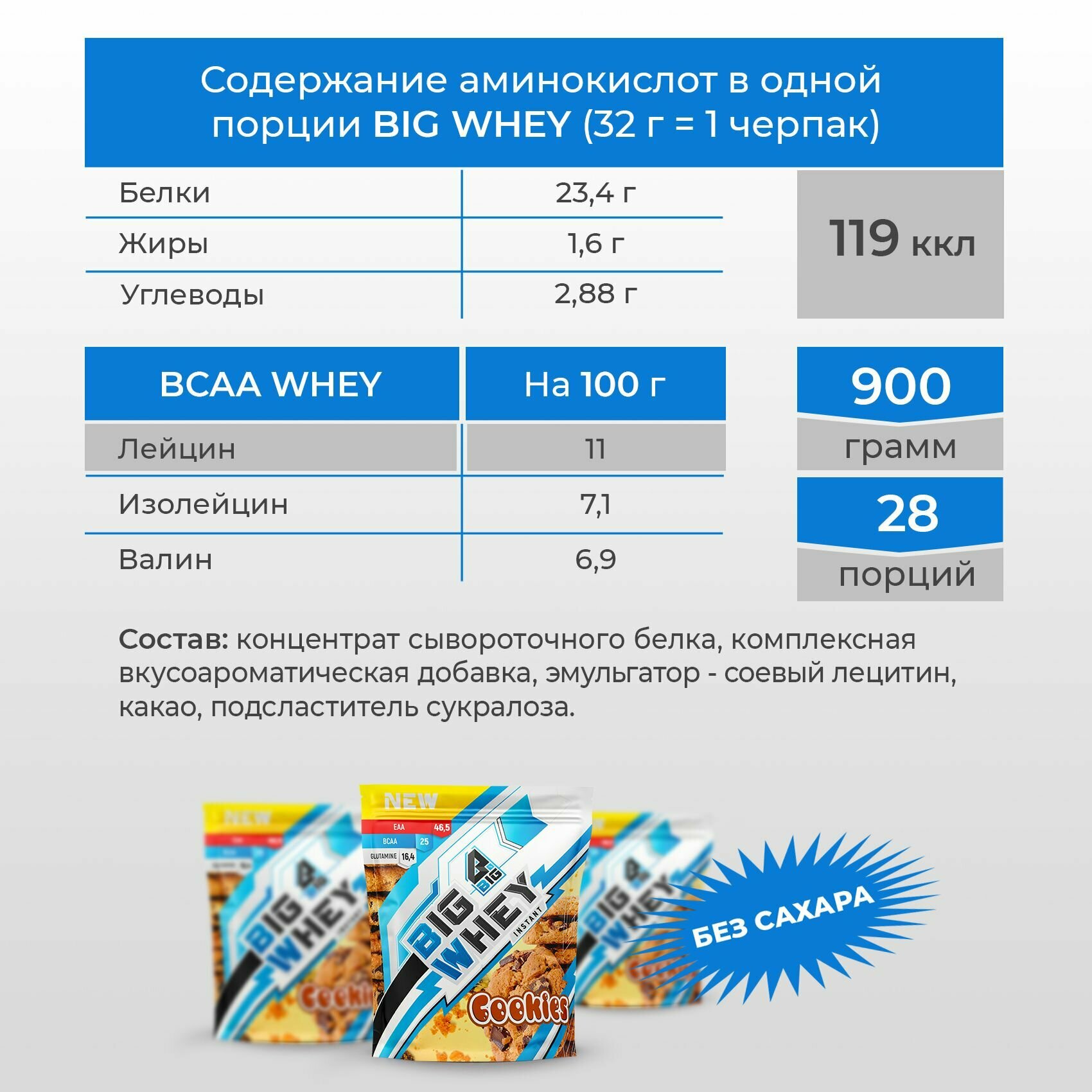 Протеин BIGSNT BIG WHEY сывороточный со вкусом печенья для набора мышечной массы, похудения, сушки/ спортивное питание, 900 г, 28 порций 2 010 ₽ Подробнее
