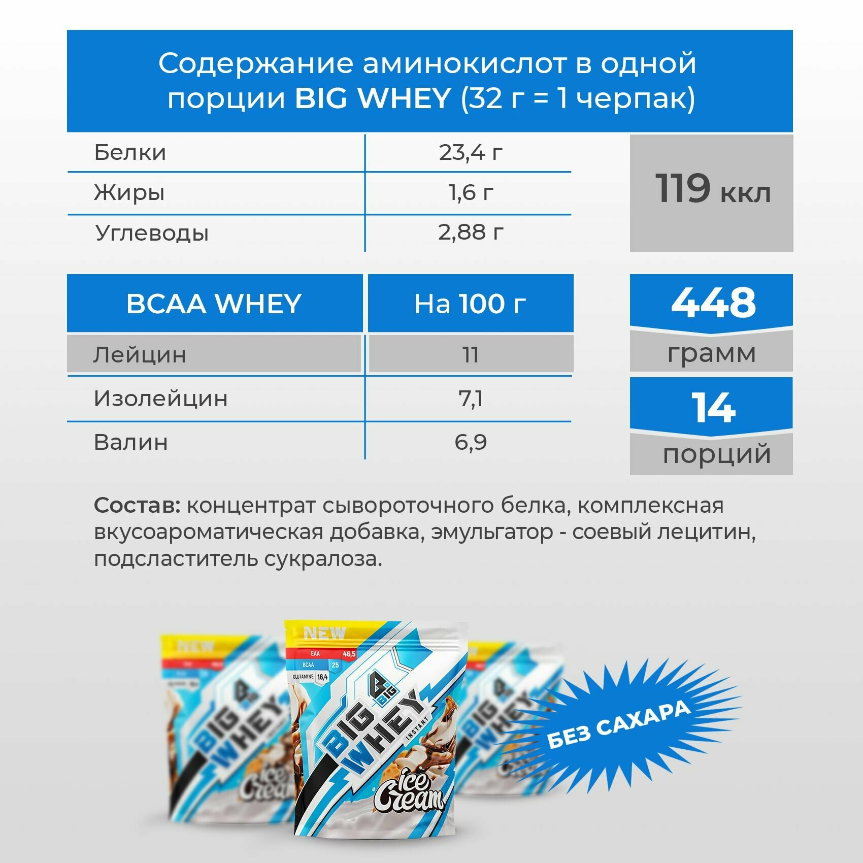 Протеин BIGSNT BIG WHEY сывороточный со вкусом мороженого для набора мышечной массы, похудения, сушки/ спортивное питание, 448 г, 14 порций 1 055 ₽ Подробнее