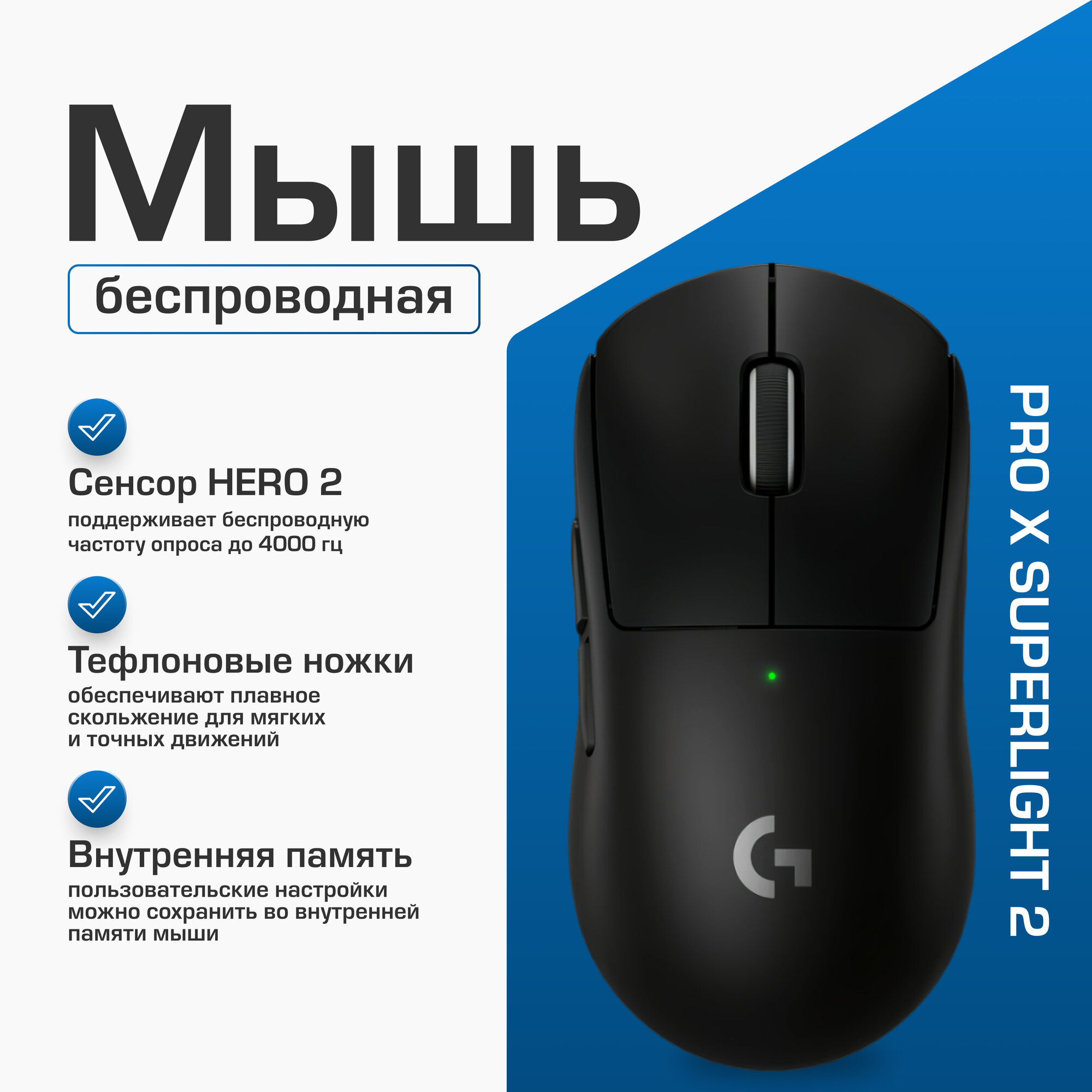 Мышки Мышь Logitech G PRO X Superlight 2 беспроводная черный (910-006634)