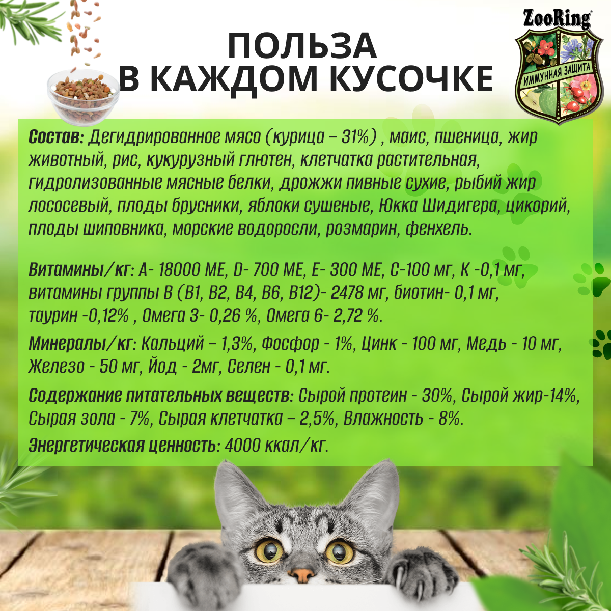 Корм ZooRing ADULT CAT MAX, для кошек, с индейкой и глюкозамином, 400 г 790 ₽ Подробнее