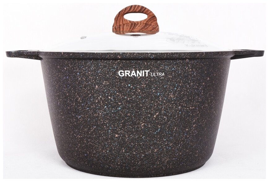 KUKMARA Кастрюля Granit ultra, 10 л, стеклянная крышка, антипригарное покрытие, цвет коричневый