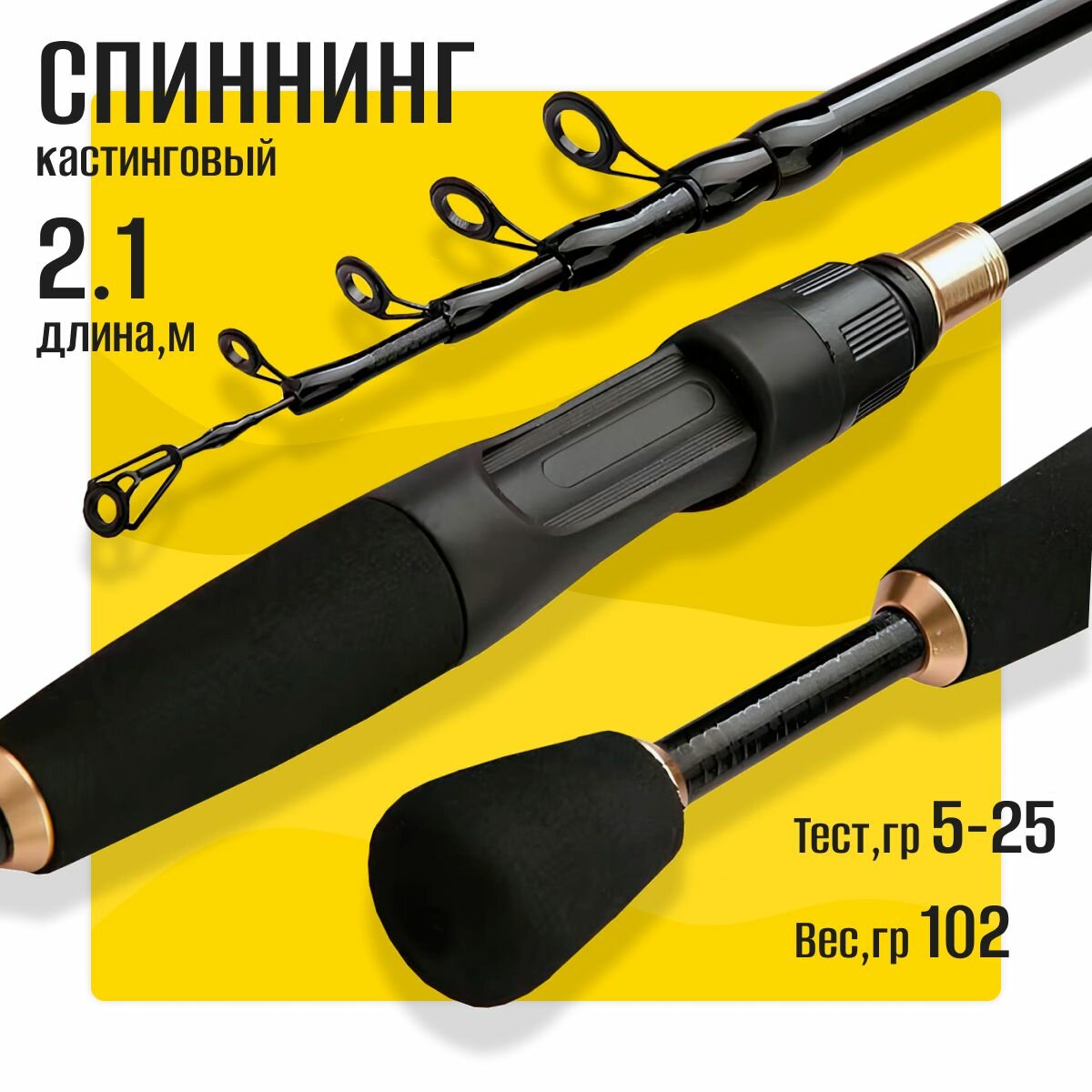 Удилища Спиннинг для рыбалки кастинговый телескопический 5-25 гр 2.1м, удилище из углеродного волокна, черное